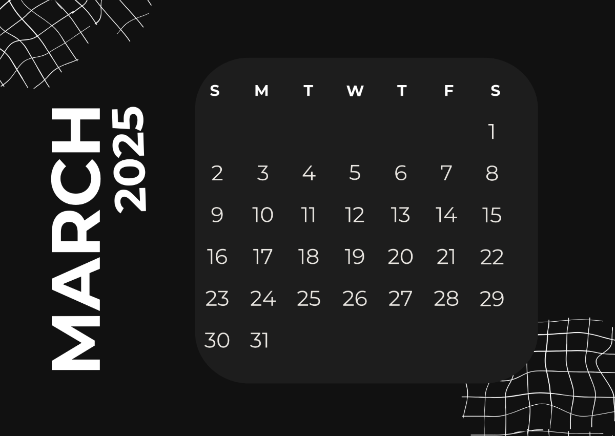 Free Black And White Minimalistic March 2025 Calendar Template To Edit Online