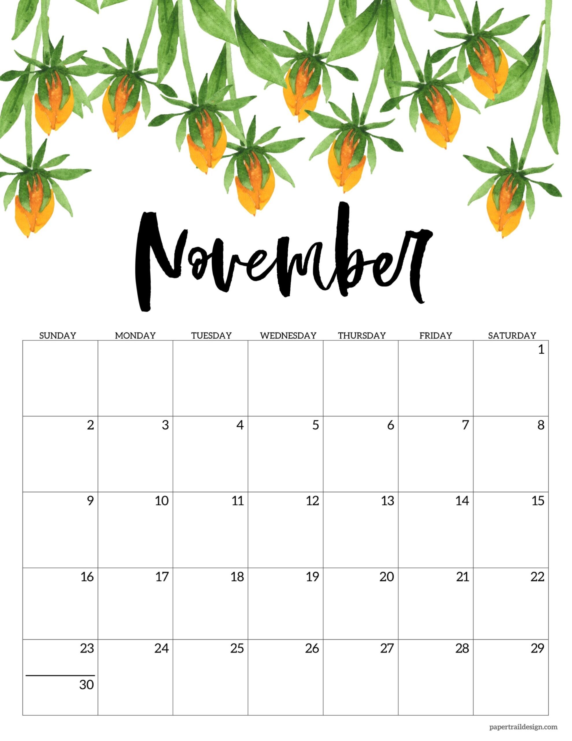 2025 Free Printable Calendar Floral Paper Trail Design
