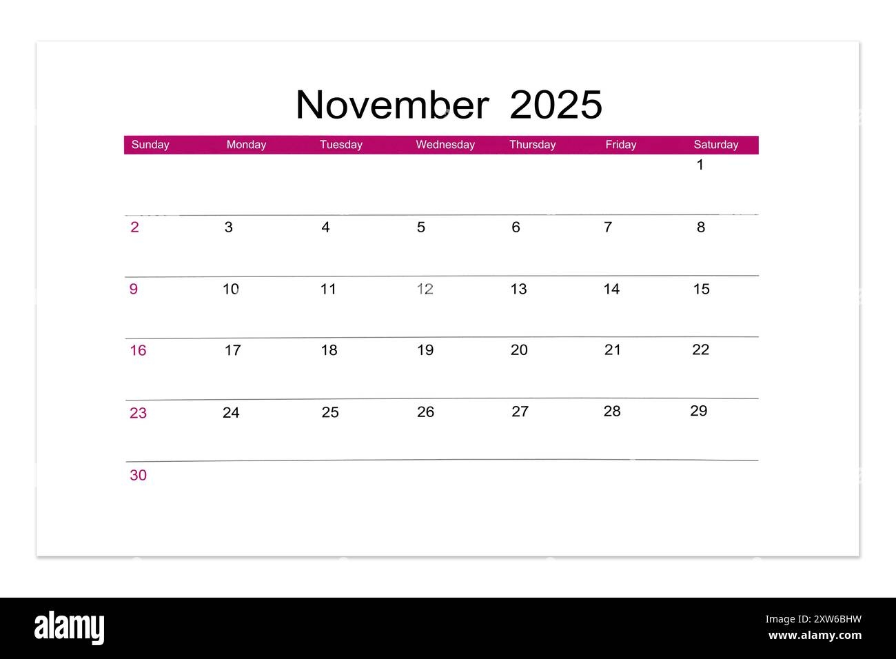 November 2025 Calendar Page For 2025 Year Isolated On White Background Saved Clipping Path Stock Photo Alamy