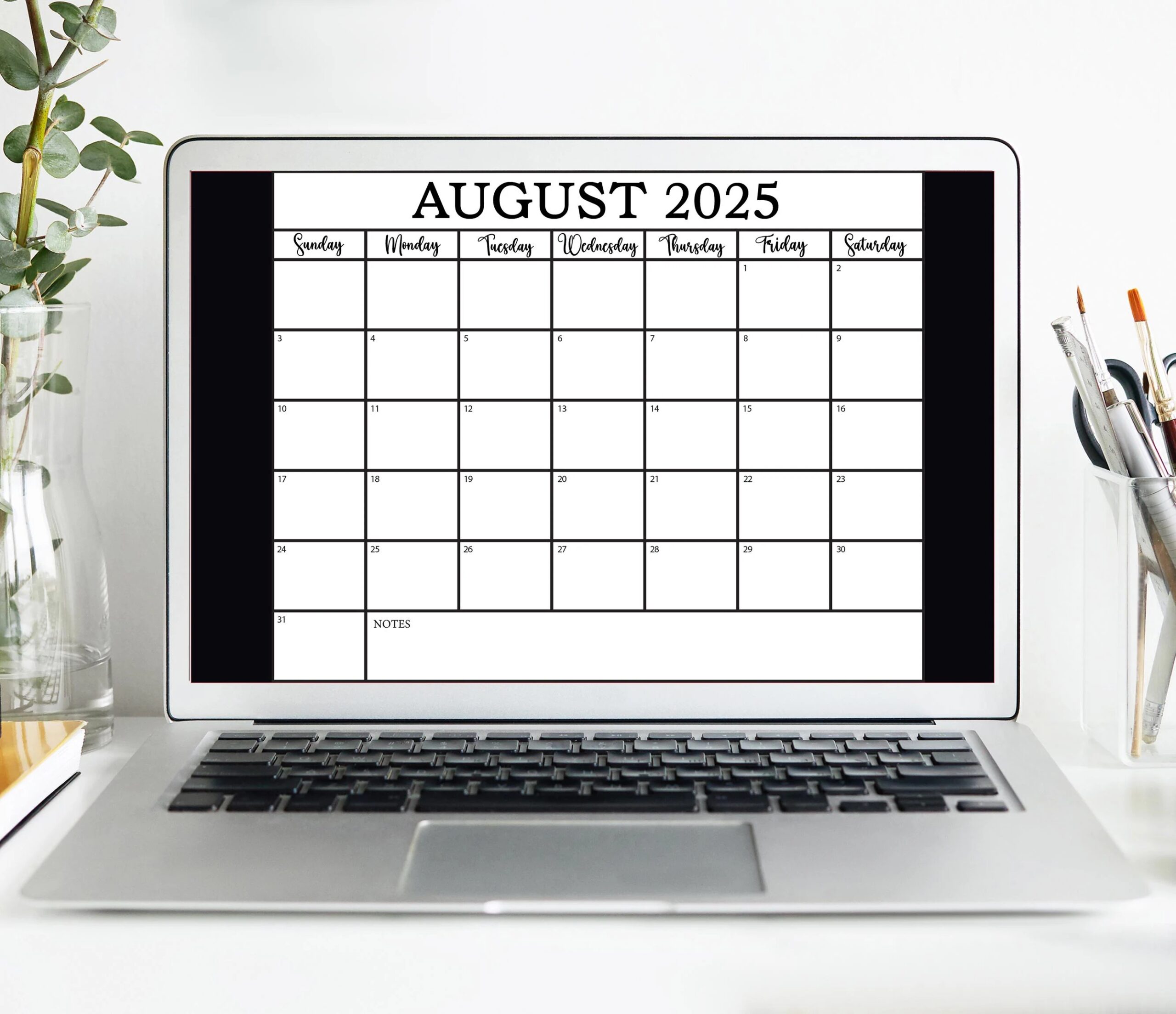 Blank Calendar Page August 2025
