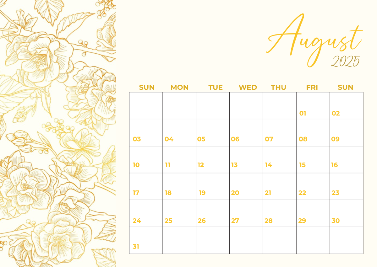With a blank calendar page, you have the flexibility to customize it to suit your needs. You can add important dates, events, deadlines, and reminders to keep you on top of your schedule for the month of August 2025.