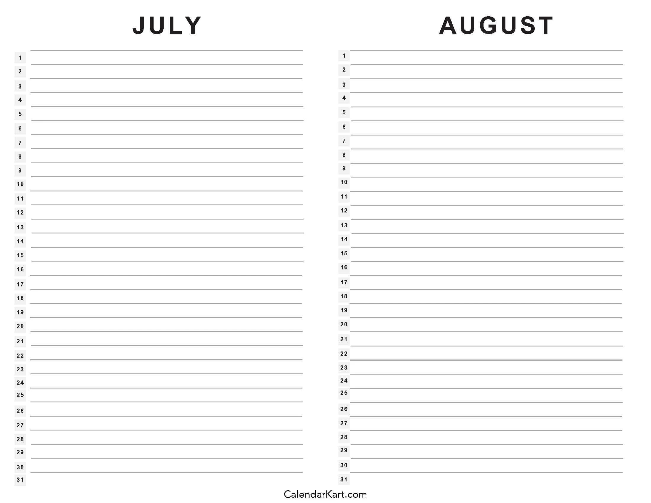 Free Printable July August 2025 Calendar Calendarkart