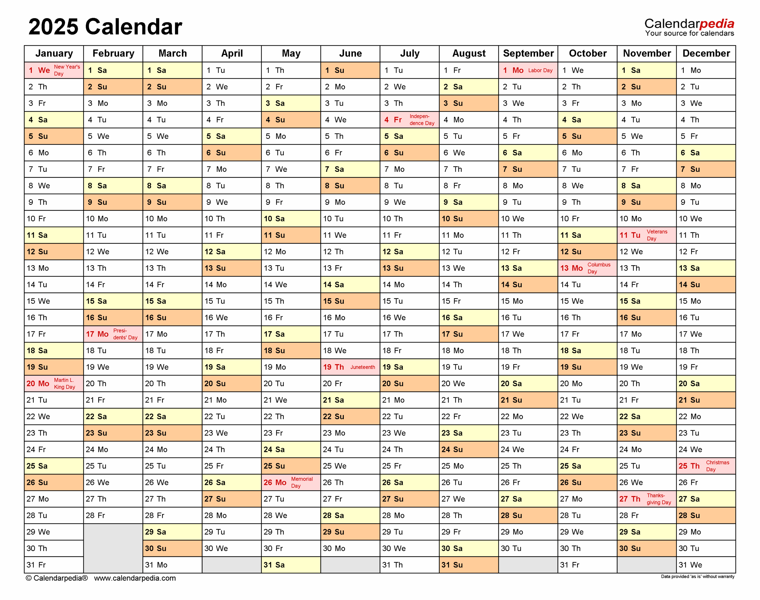 2025 Calendar Free Printable PDF Templates Calendarpedia