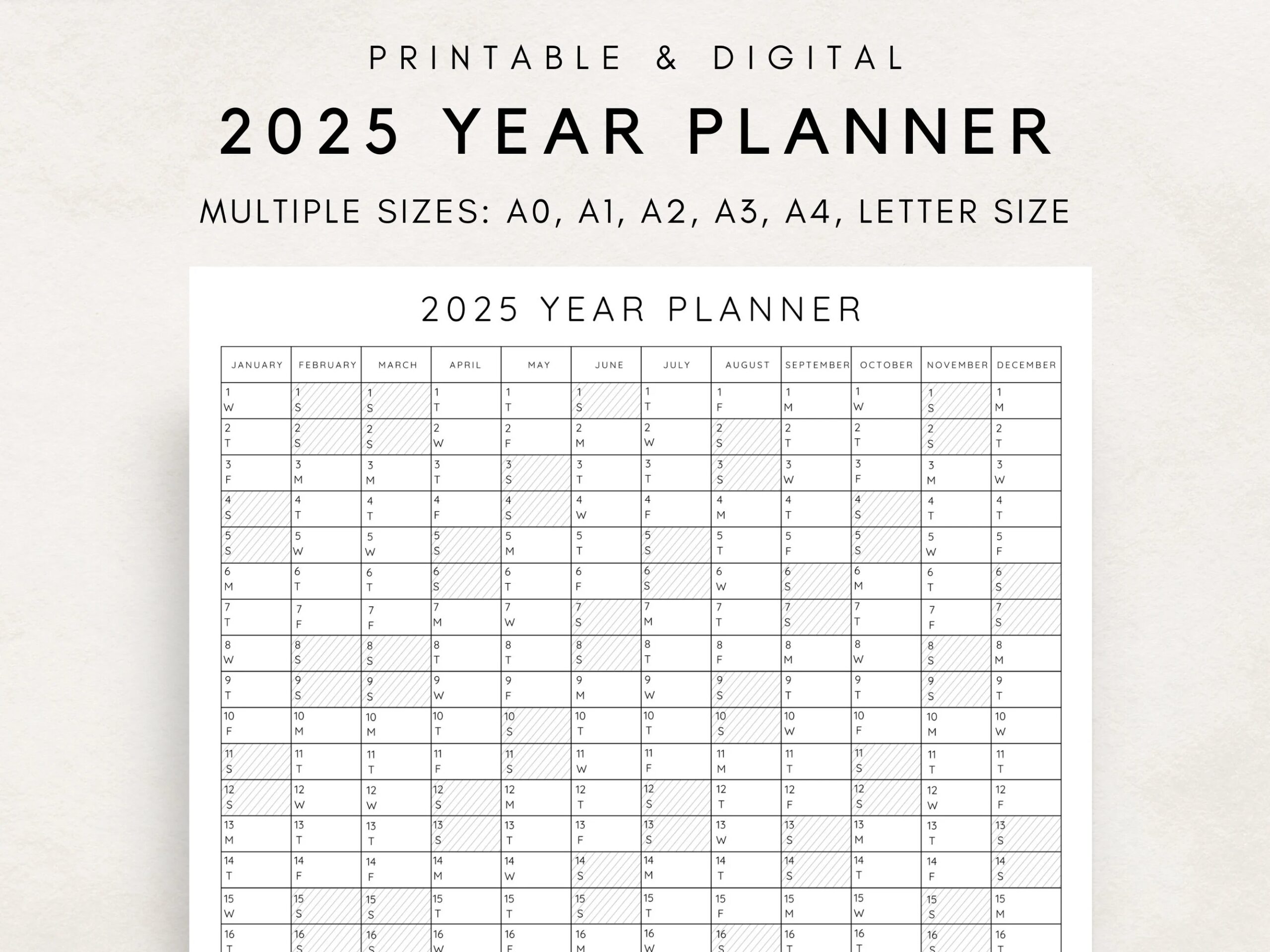 2025 Yearly Planner Printable Yearly Planning Calendar Calendar Poster Digital Calendar 2025 Calendar 2025 Planner Yearly Overview Etsy