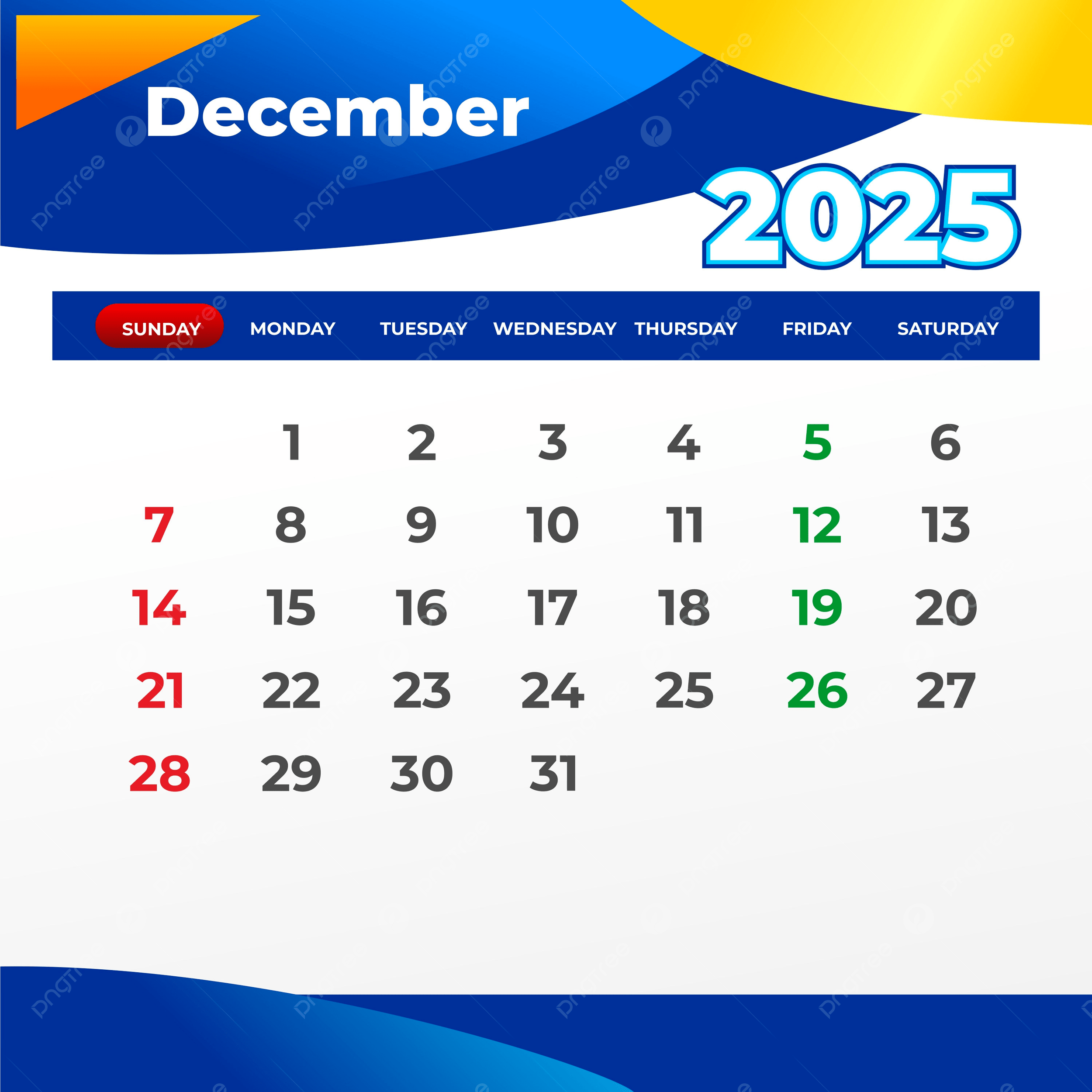 December 2025 Calendar Vector Template Download On Pngtree