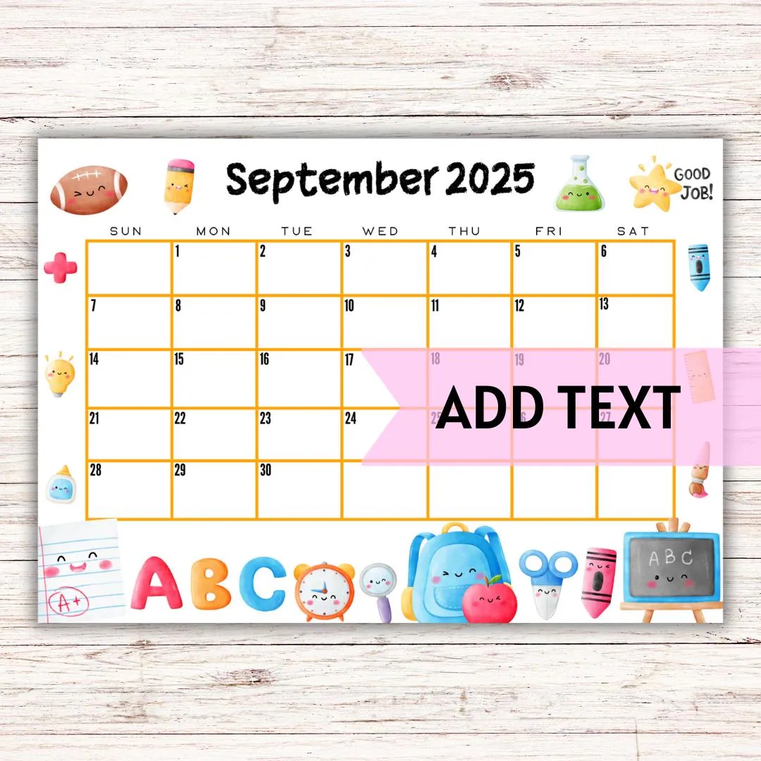 EDITABLE Printable September Calendar 2025 Back To School Calendar Classroom Calendar Monthly Calendar Fillable Calendar Etsy