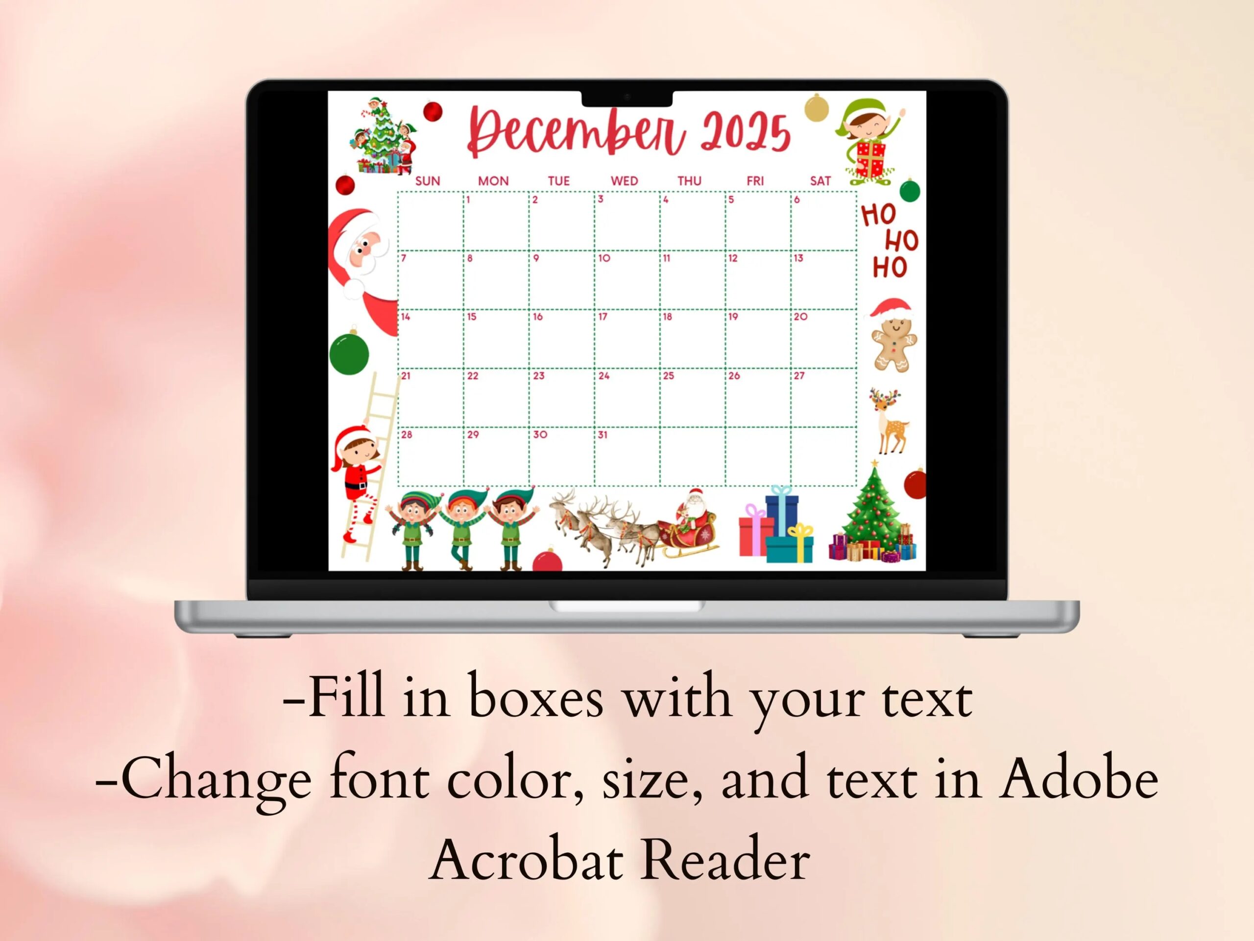 Editable December 2025 Calendar Printable Christmas Calendar W Santa And Elves Holiday Calendar School Calendar Green And Red Holiday Etsy