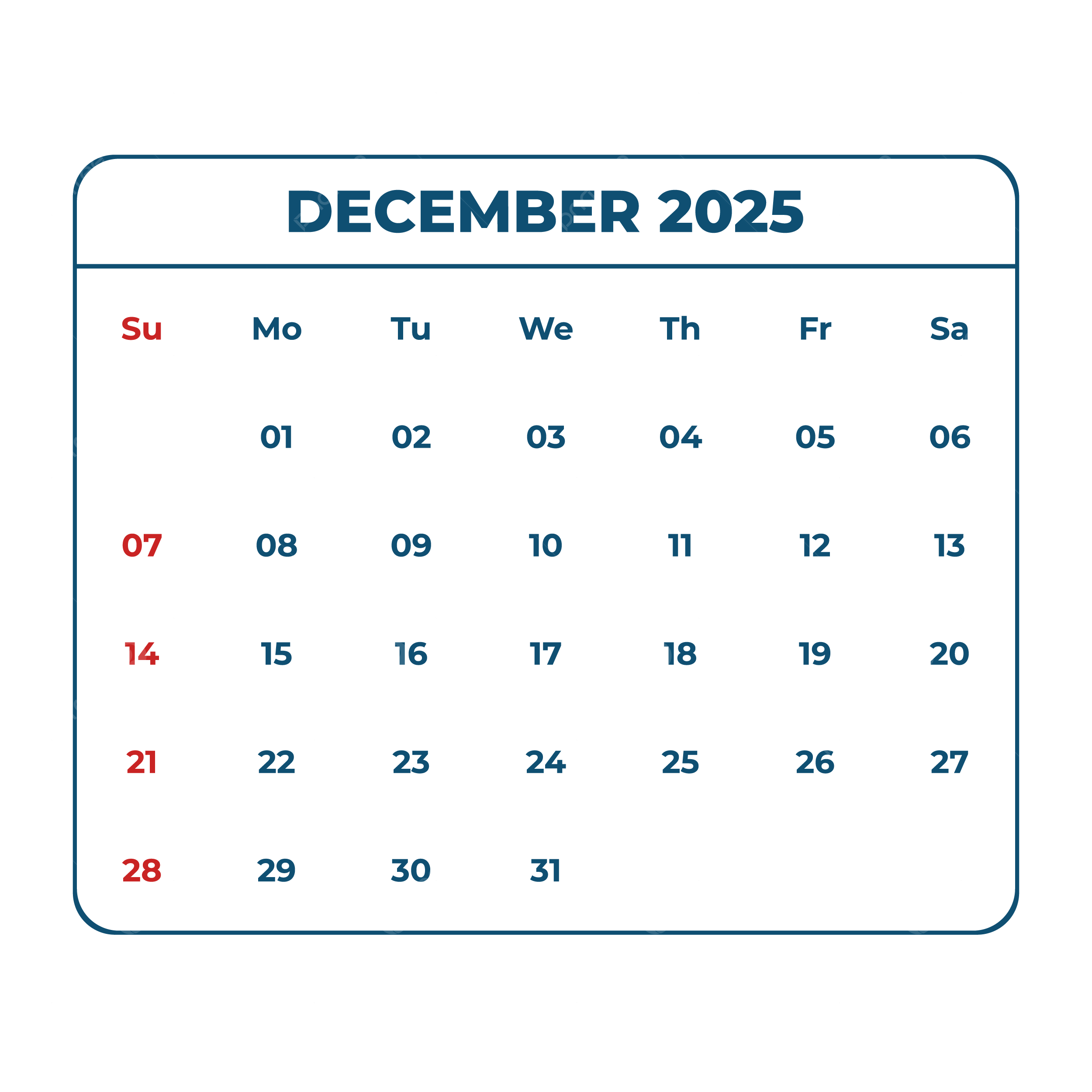 Month Of December 2025 Monthly Calendar Design Vector December 2025 Desk Calender 2025 PNG And Vector With Transparent Background For Free Download