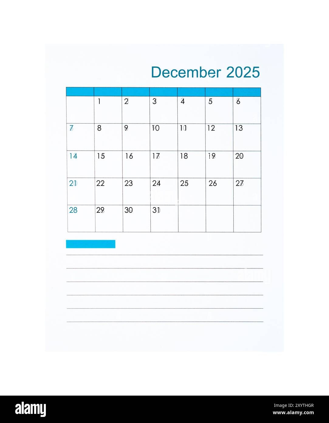 Vertical Of December 2025 Calendar Page For 2025 Year Isolated On White Background Saved Clipping Path Stock Photo Alamy