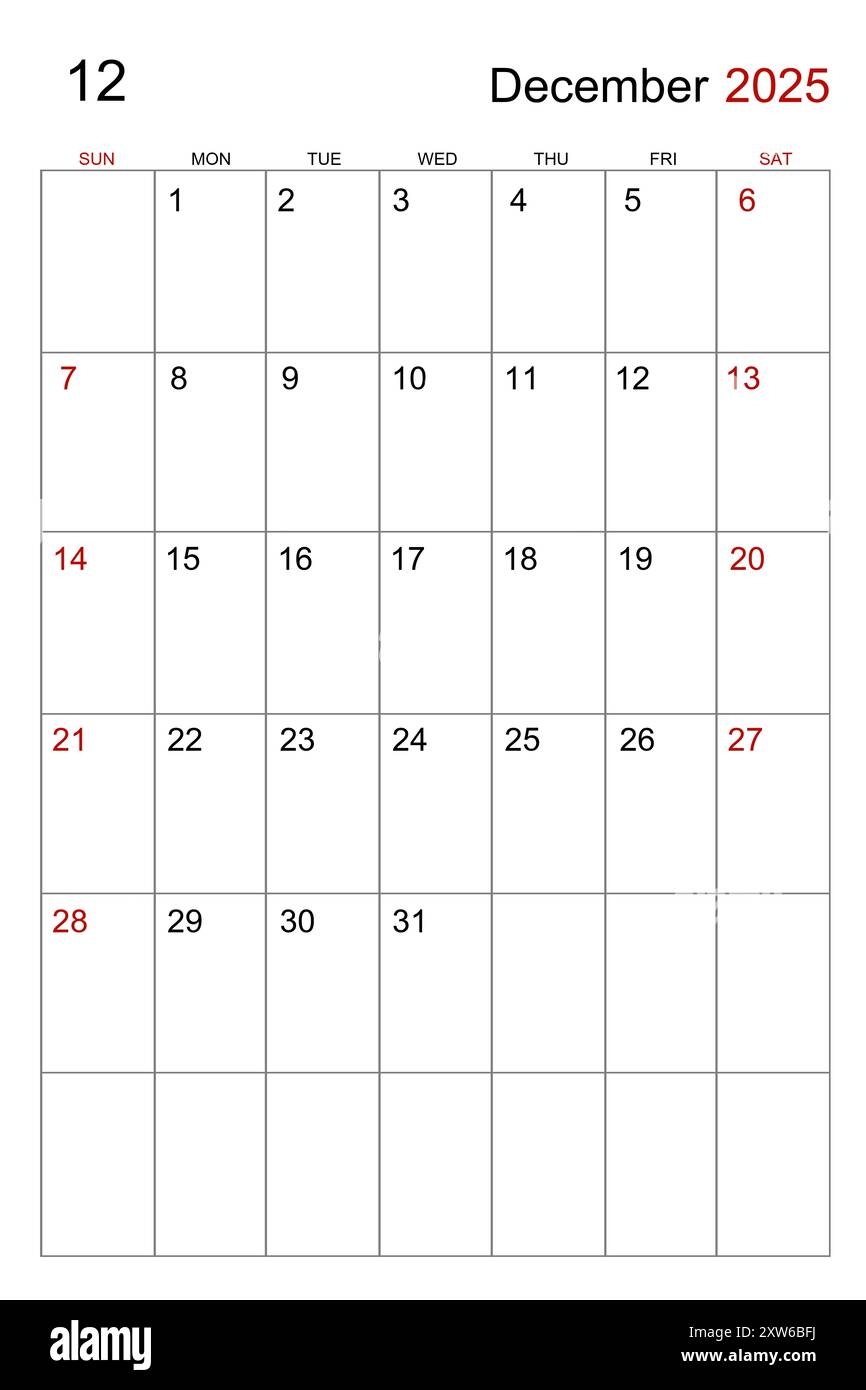 Letter Calendar For December 2025 The Week Begins On Sunday Time Planning And Schedule Concept Flat Design Removable Calendar For The Month Vect Stock Vector Image Art Alamy