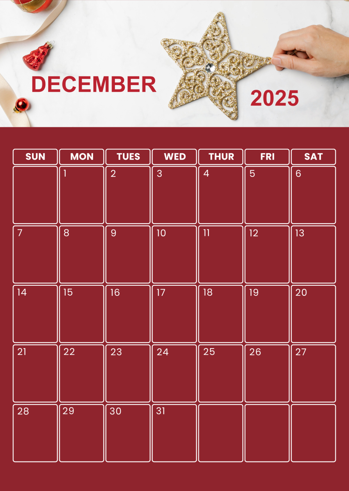 Free Portrait December 2025 Aesthetic Calendar Template To Edit Online