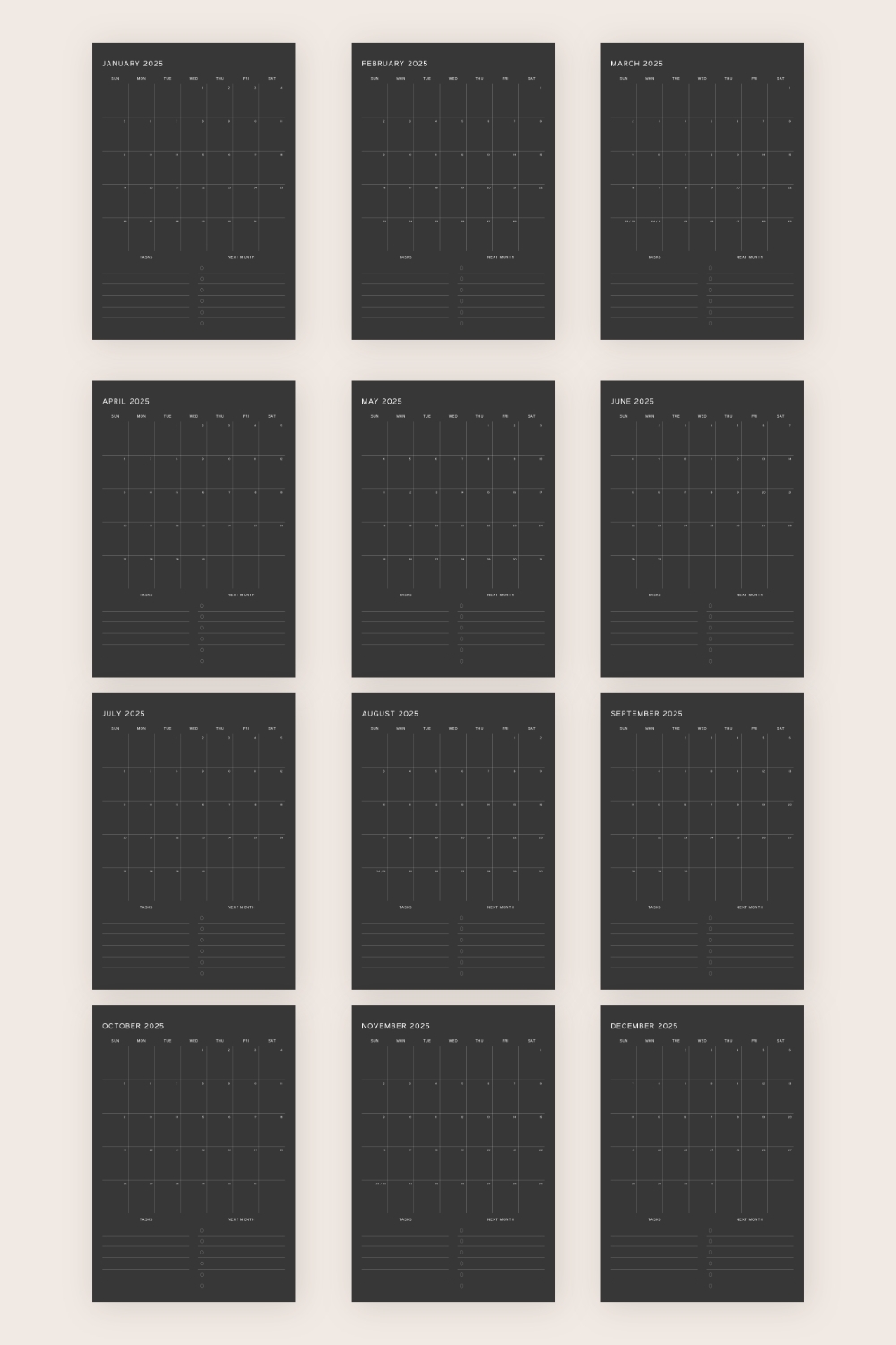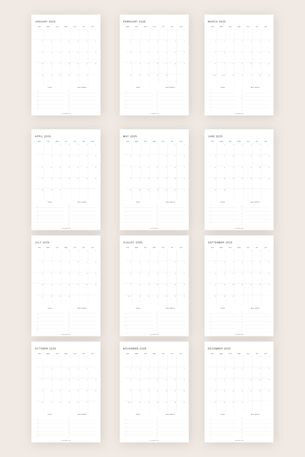 Monthly Calendar Digital Template 2025 AnjaHome