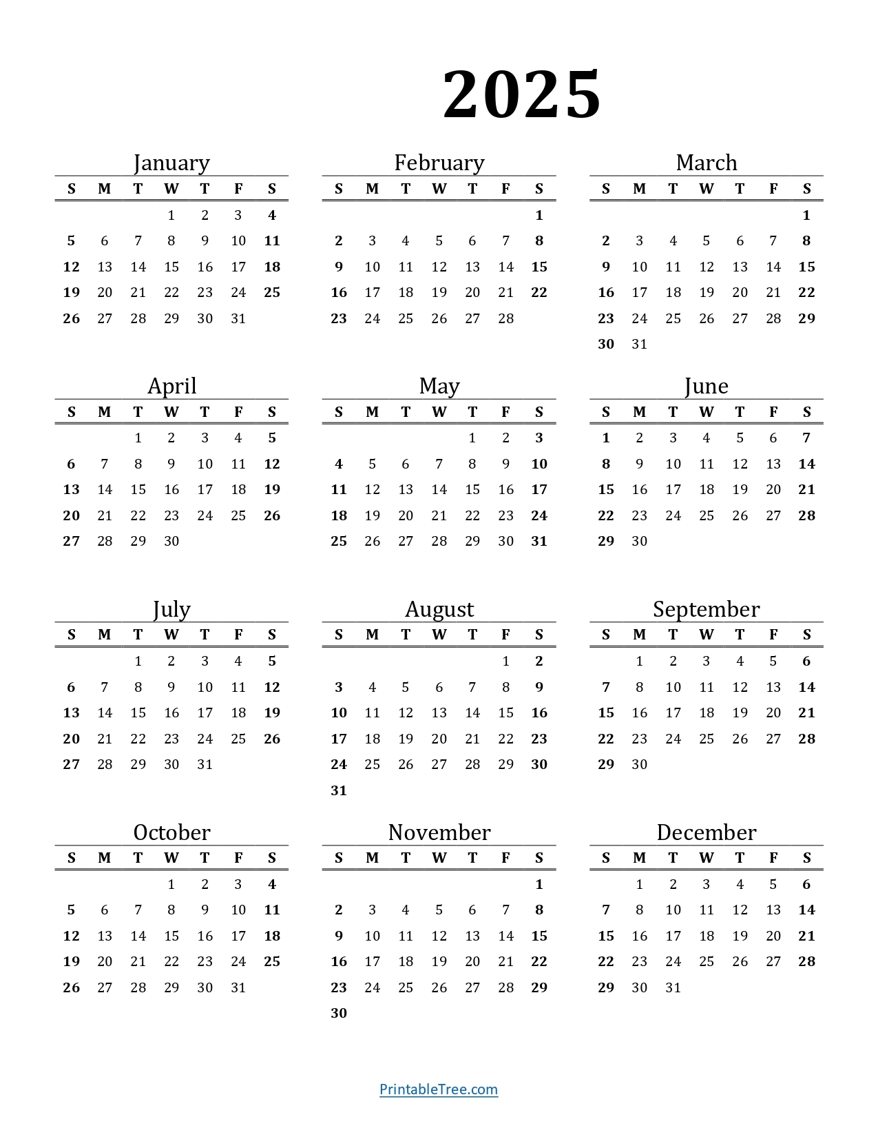 Printable Calendar 2025 One Page With Holidays Single Page 2025 Yearly Blank PDF Templates