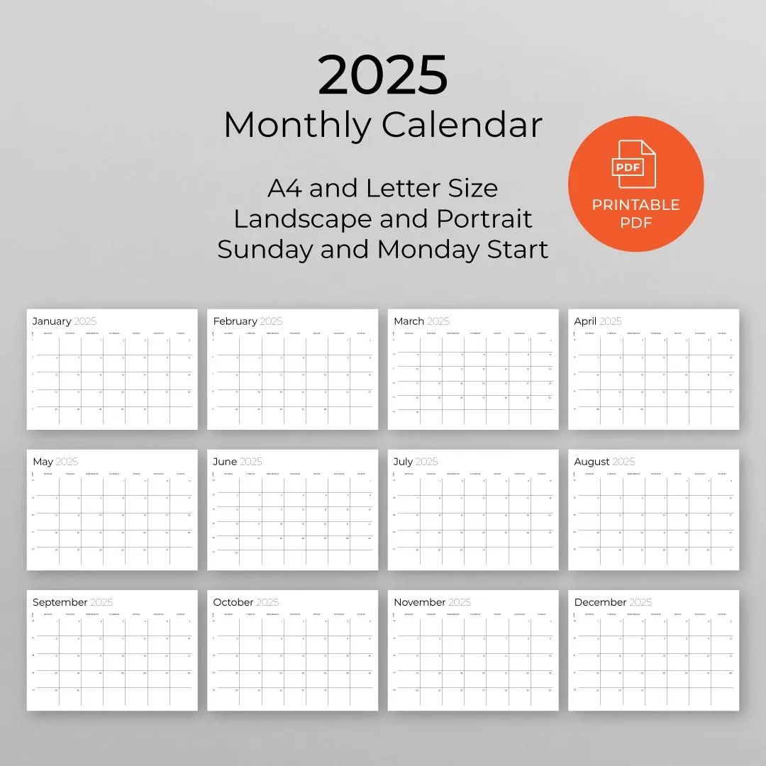 Printable Monthly Planner Calendar 2025 Portrait And Landscape Letter 11×17 A4 Monday Sunday Start Instant Download Etsy