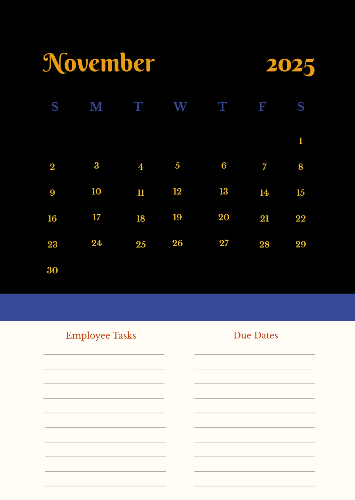 Ready to get organized for November 2025? Look no further than a blank, fillable, editable calendar to help you plan out your month. With customizable features, you can tailor your calendar to fit your needs and schedule.