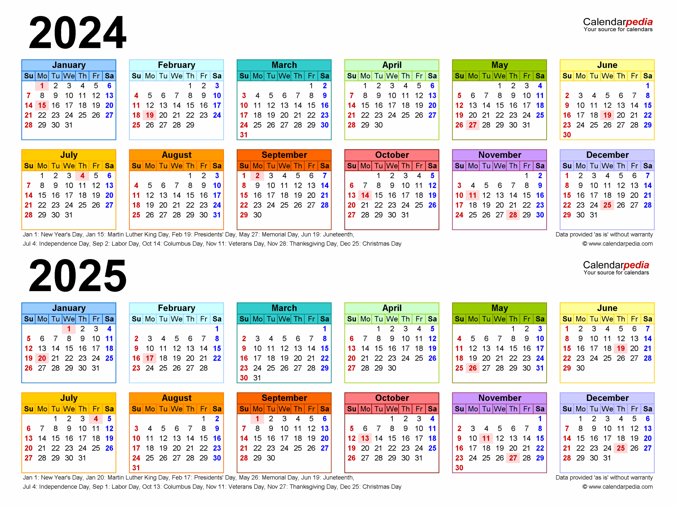 2024 2025 Two Year Calendar Free Printable PDF Templates
