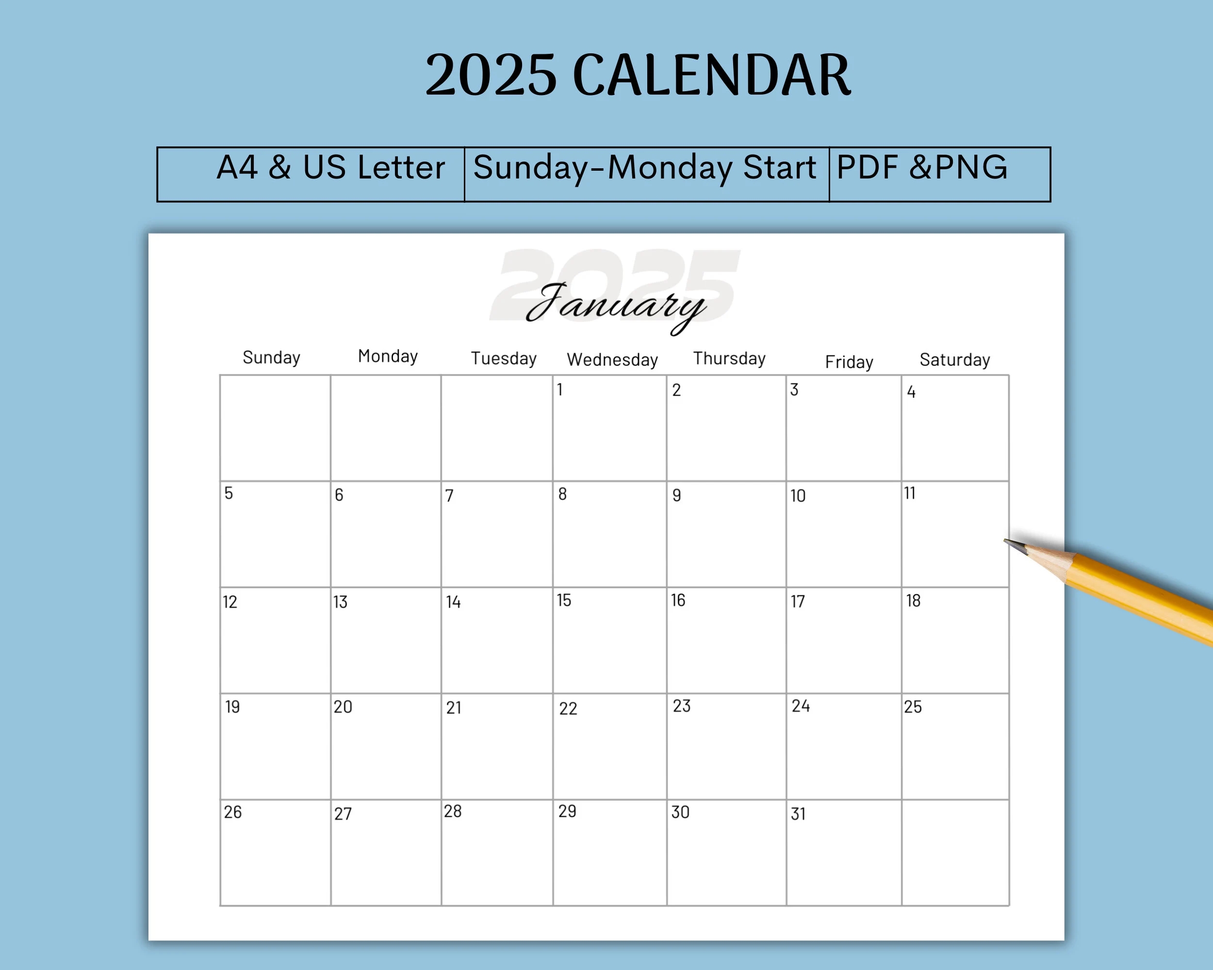 2025 Calendar Printable 2025 Calendar 2025 Calendar Template 2025 Planner Sunday Monday Start A4 US Letter PDF PNG Etsy