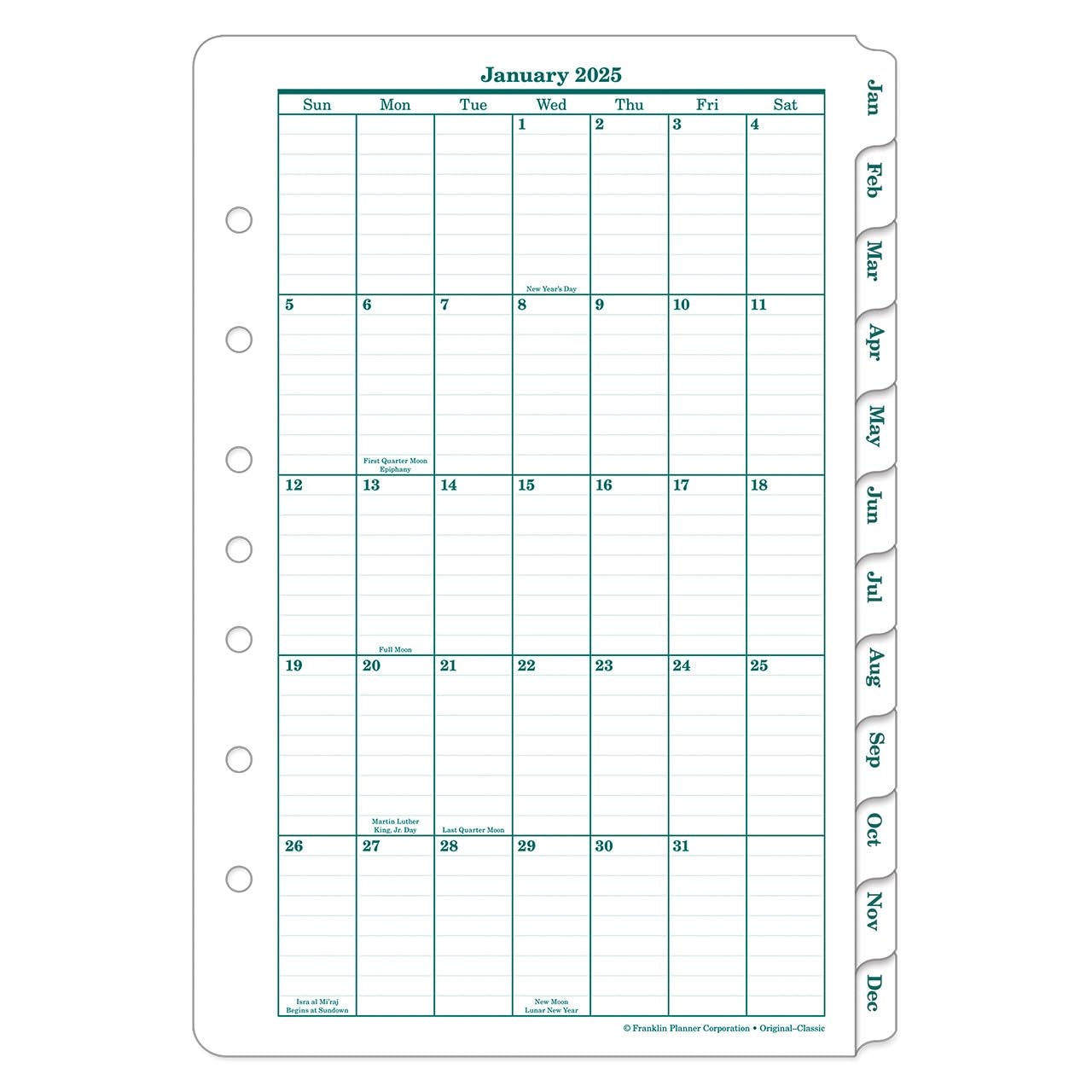Amazon FranklinCovey Original One Page Monthly Calendar Tabs Classic Jan 2025 Dec 2025 Office Products