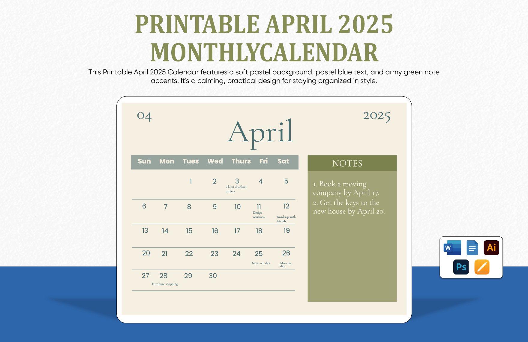 Printable April 2025 Monthly Calendar Template In Apple Pages Illustrator Word PSD Google Docs To Download Template