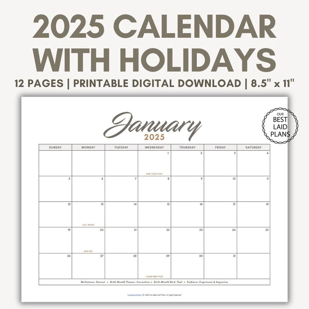 Monthly Calendar 2025 2025 Calendar Printable Blank Calendar 2025 Calendar Template 12 Month Calendar Month At A Glance 2024 Planner Etsy