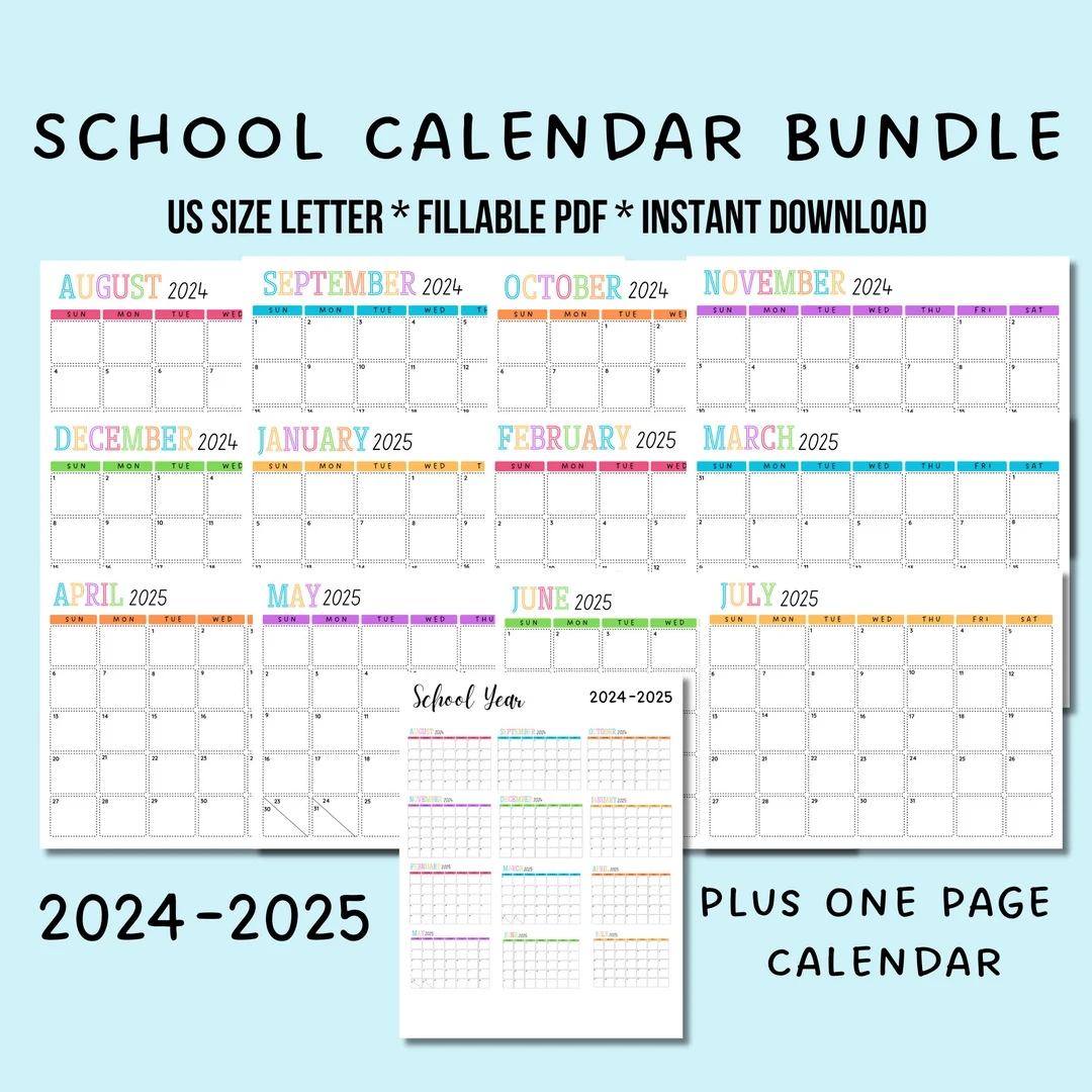 School Year Calendar Printable 2024 2025 Bundle Portrait Monthly Calendar Year At A Glance Academic Calendar Editable Yearly School Calendar Etsy