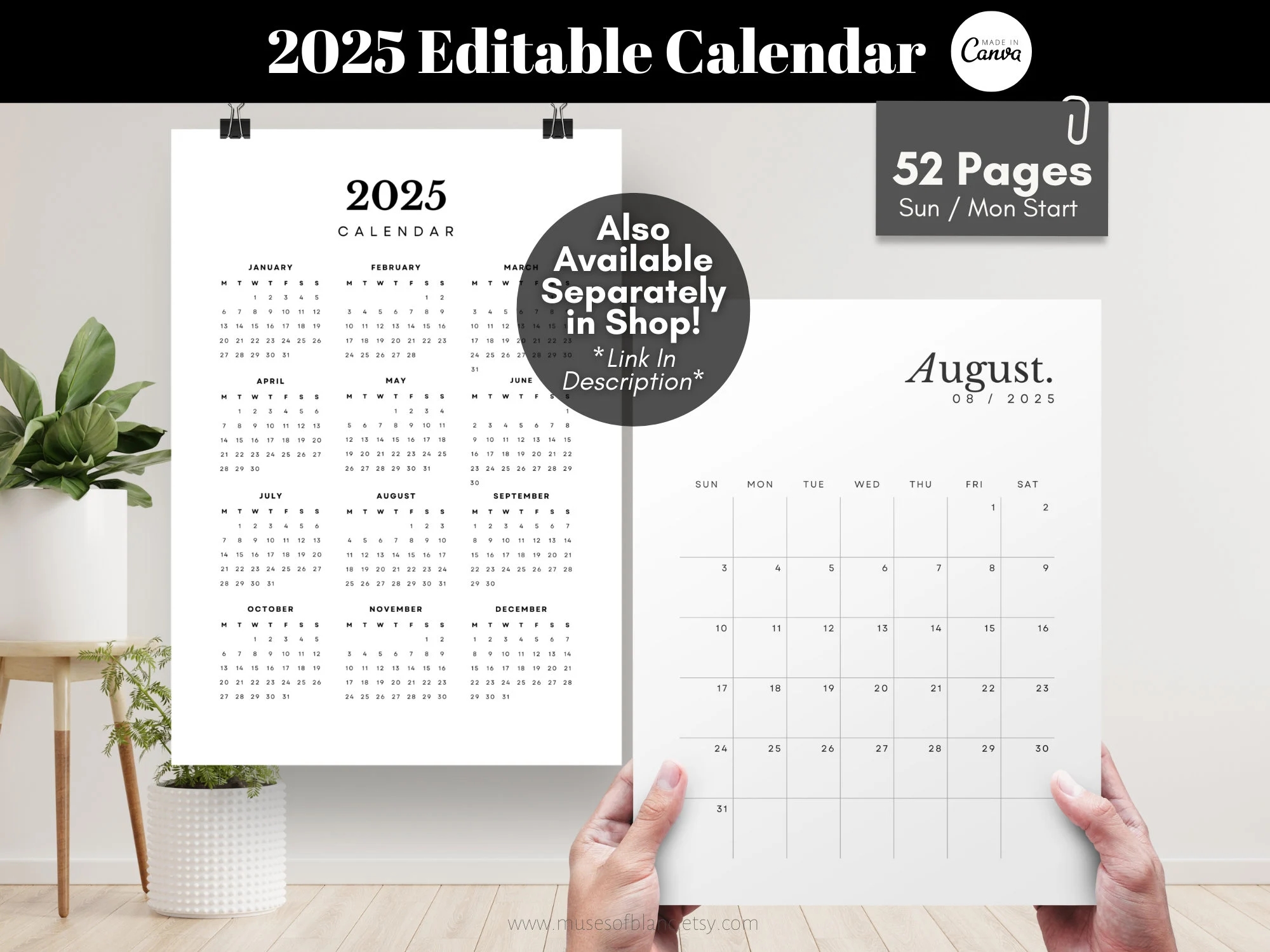 2025 Editable Calendar Template 2025 Monthly Calendar 2025 Photo Calendar Printable Wall Calendar Desk Calendar Digital Planner Calendar Etsy