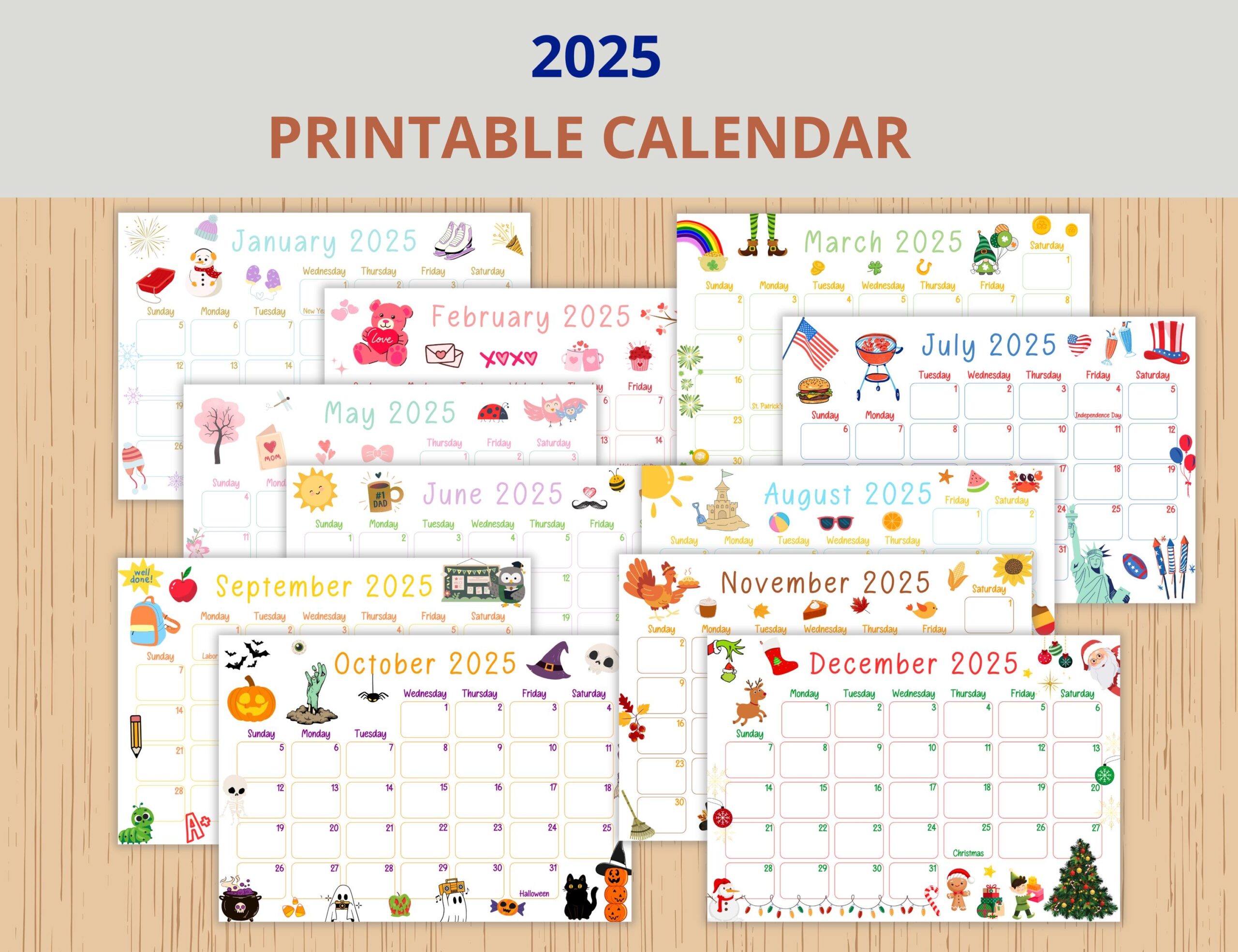2025 Calendar Printable cute Kids Calendar 2025 wall Calendar Pdf editable Calendar kids Monthly Planner homeschool Calendars animated JEF19 Etsy