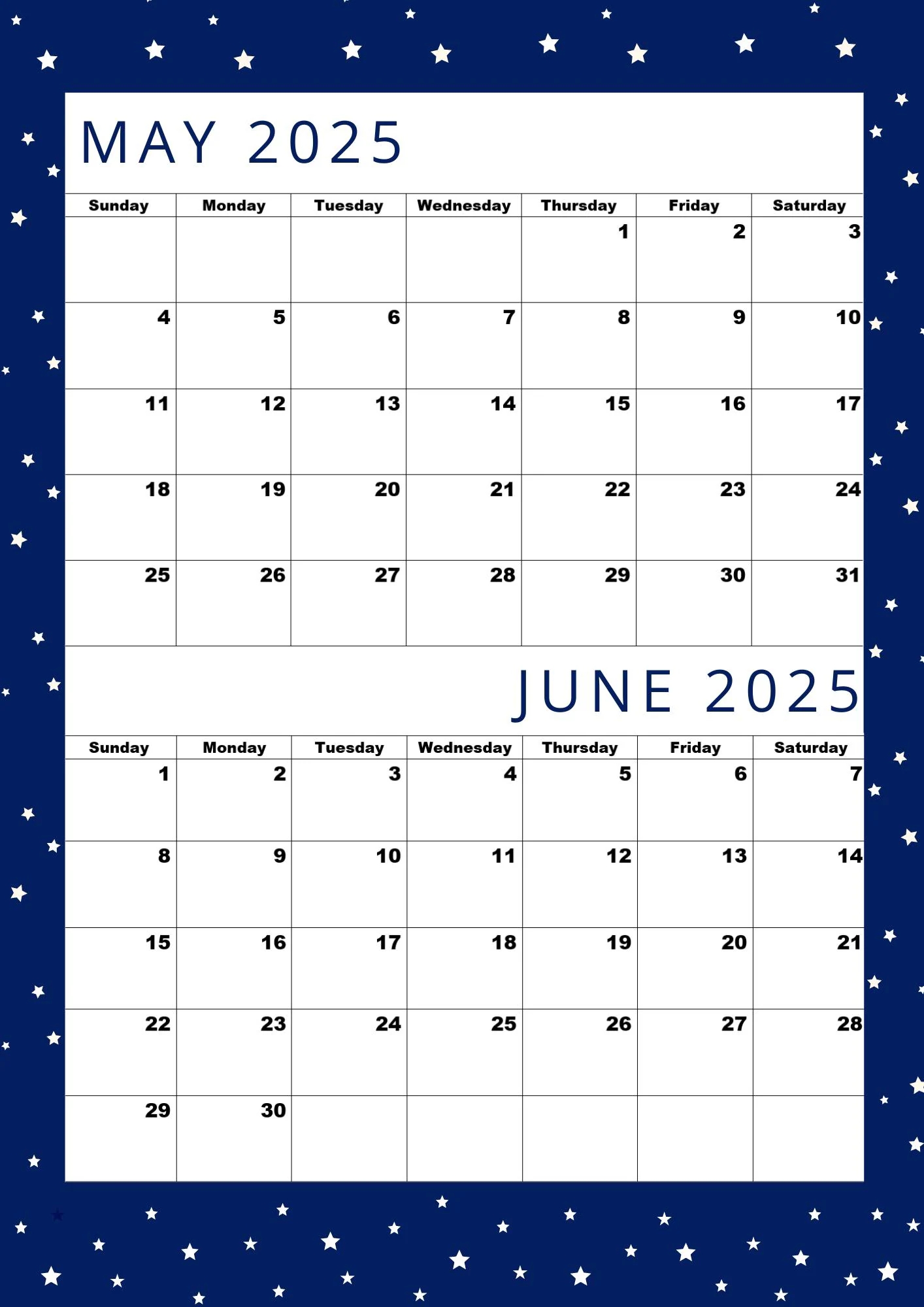 Premium Calendar Printable For May 2025 And June 2025 PDF Printable a4 Size For Easy Printing Etsy New Zealand