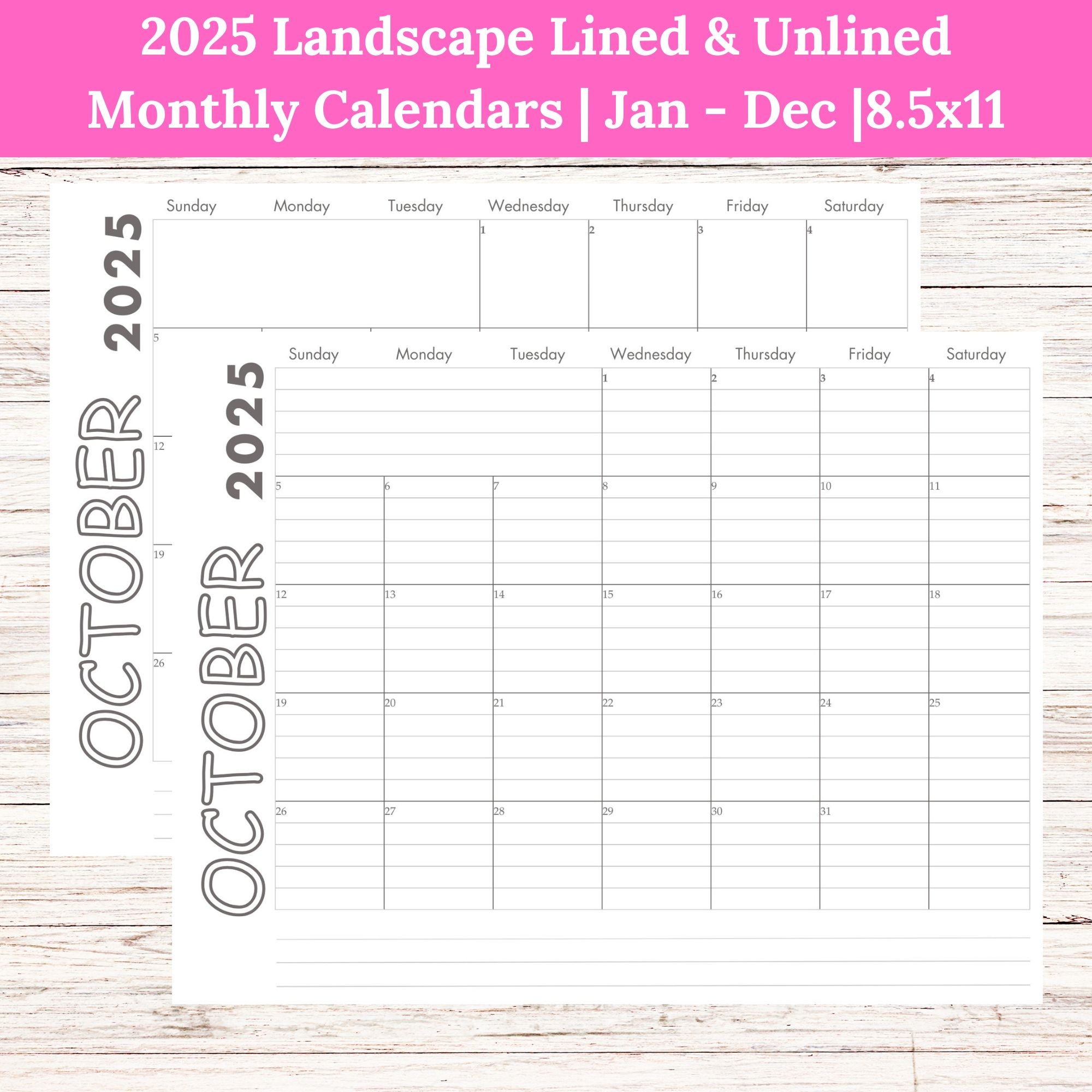 2025 Calendar Printable Floral 2025 Monthly Planner Wall Or Desk Month At A Glance Letter A4 Size Sunday Start Landscape Digital PDF Etsy