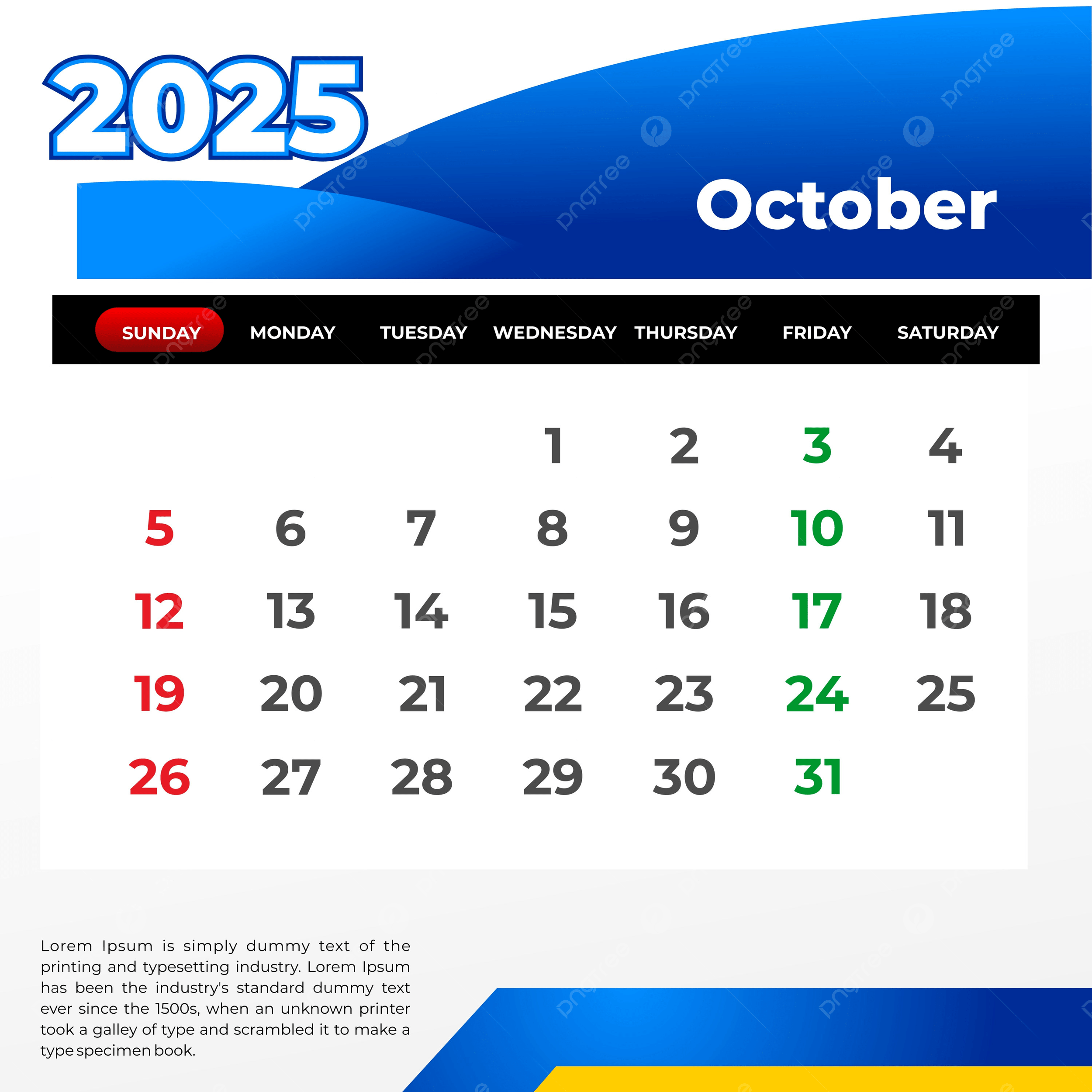 October 2025 Calendar Vector Template Download On Pngtree