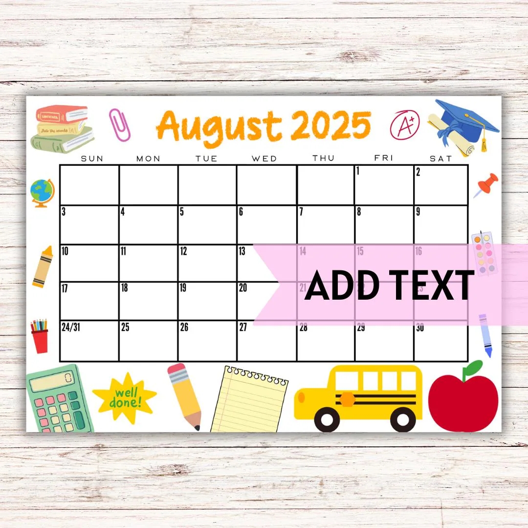 EDITABLE Printable August Calendar 2025 Back To School Calendar Classroom Calendar Cute August 2025 Calendar Fillable Calendar Etsy
