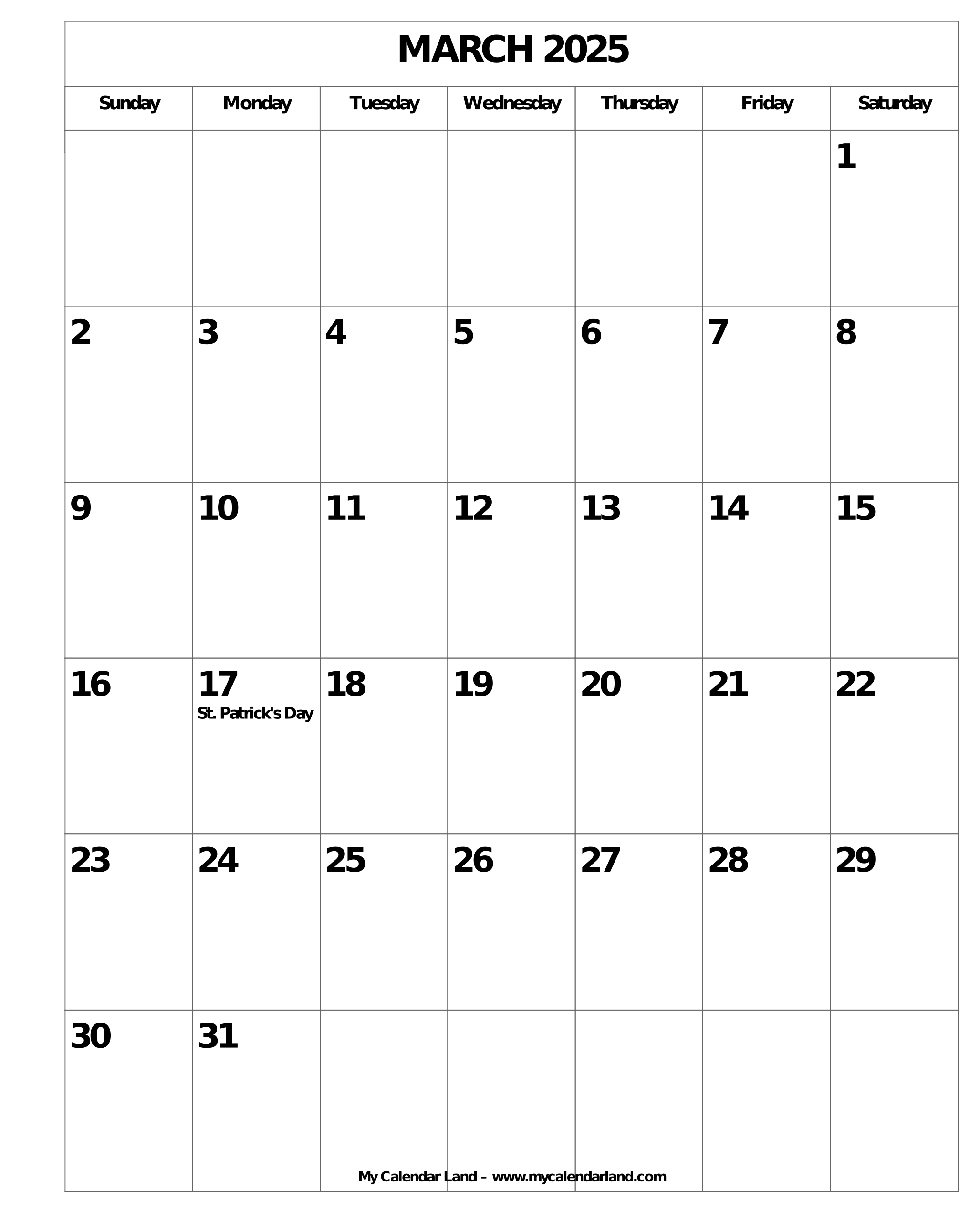 March 2025 Calendar Free Printable PDF XLS And PNG