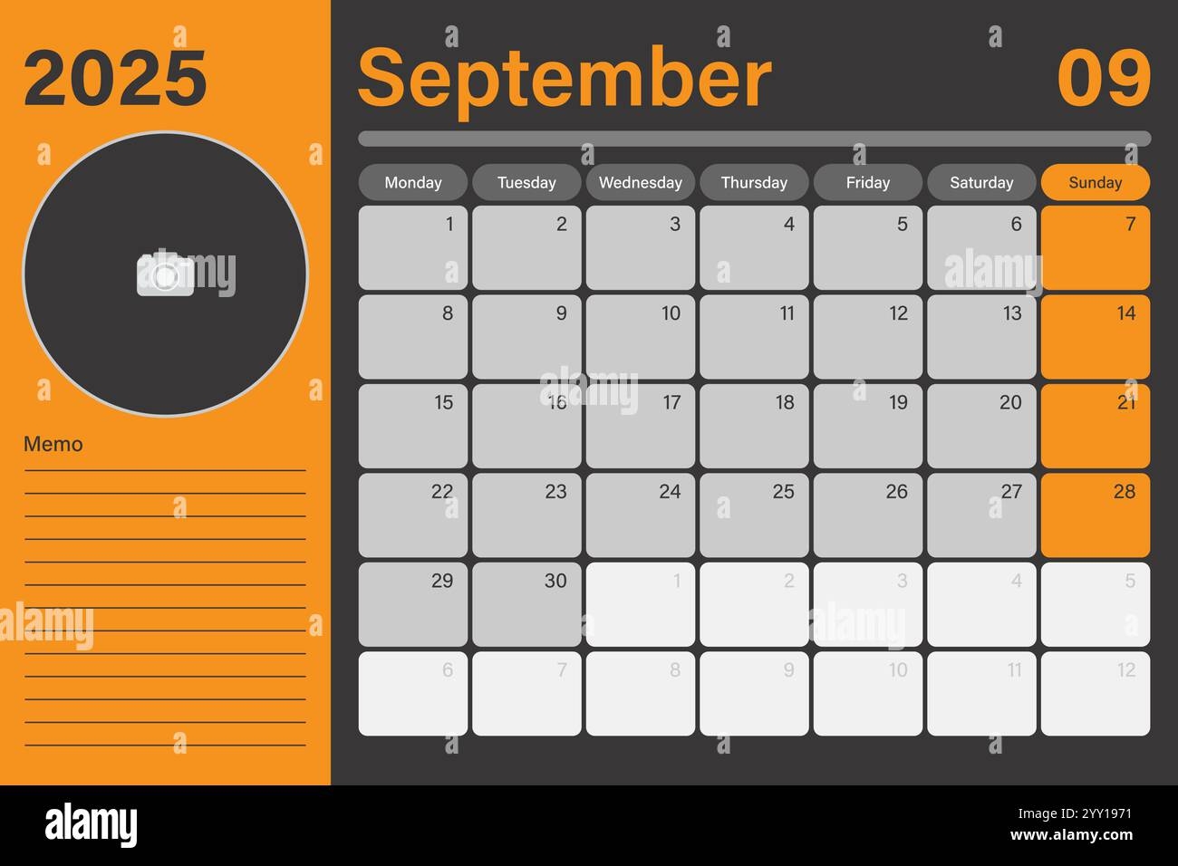 September 2025 Calendar Monthly Planner Template Sunday Start Vector Design Stock Vector Image Art Alamy