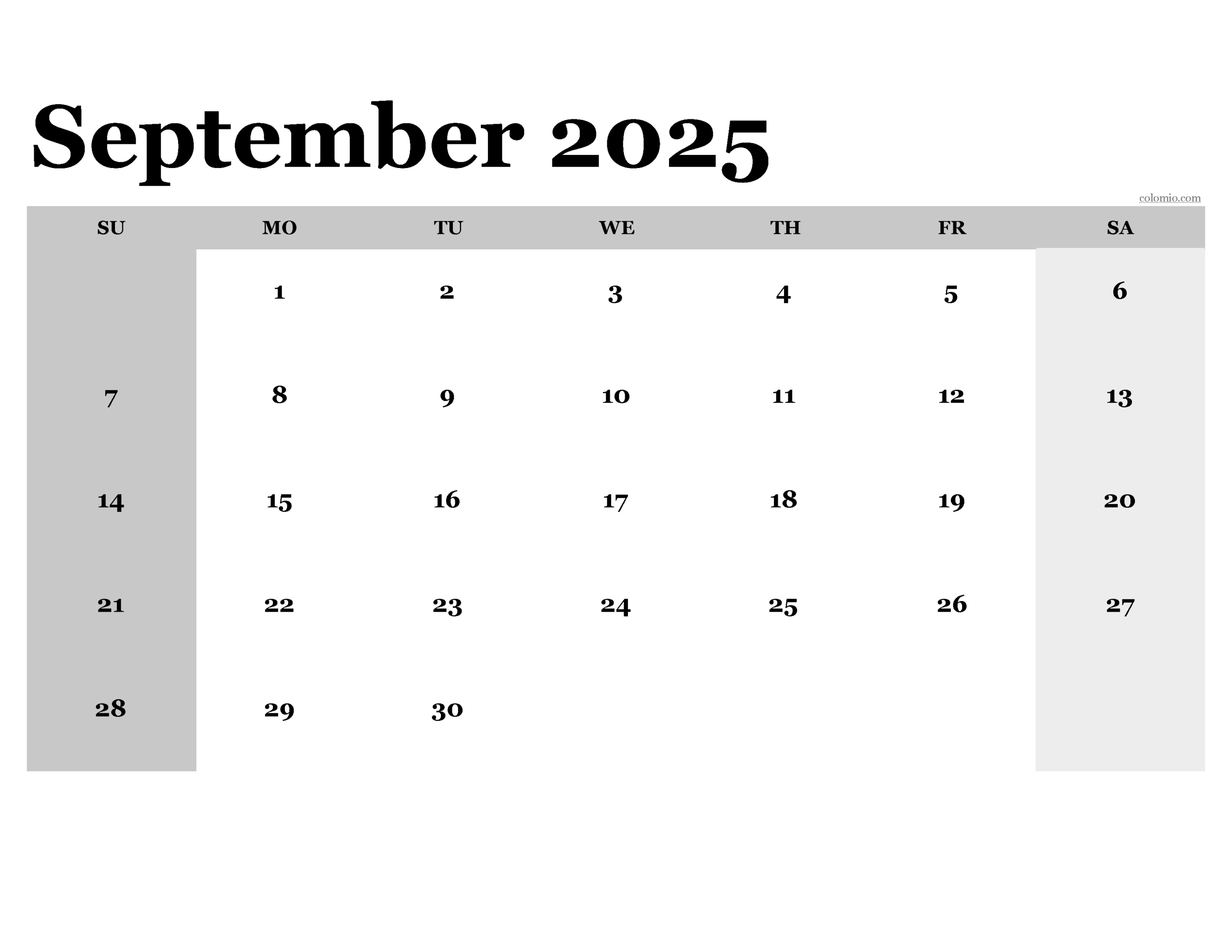 Blank September Calendar 2025 Printable