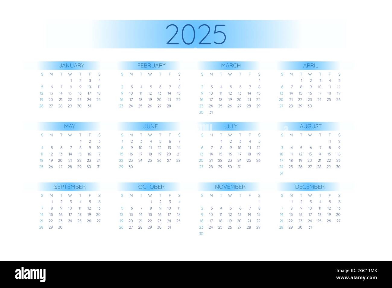 2025 Pocket Calendar Template In Strict Minimalistic Style With Blue Gradient Elements Horizontal Format Week Starts On Sunday Stock Vector Image Art Alamy
