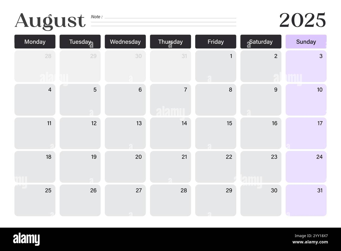 Simple 2025 Year Calendar Week Stock Vector Images Alamy