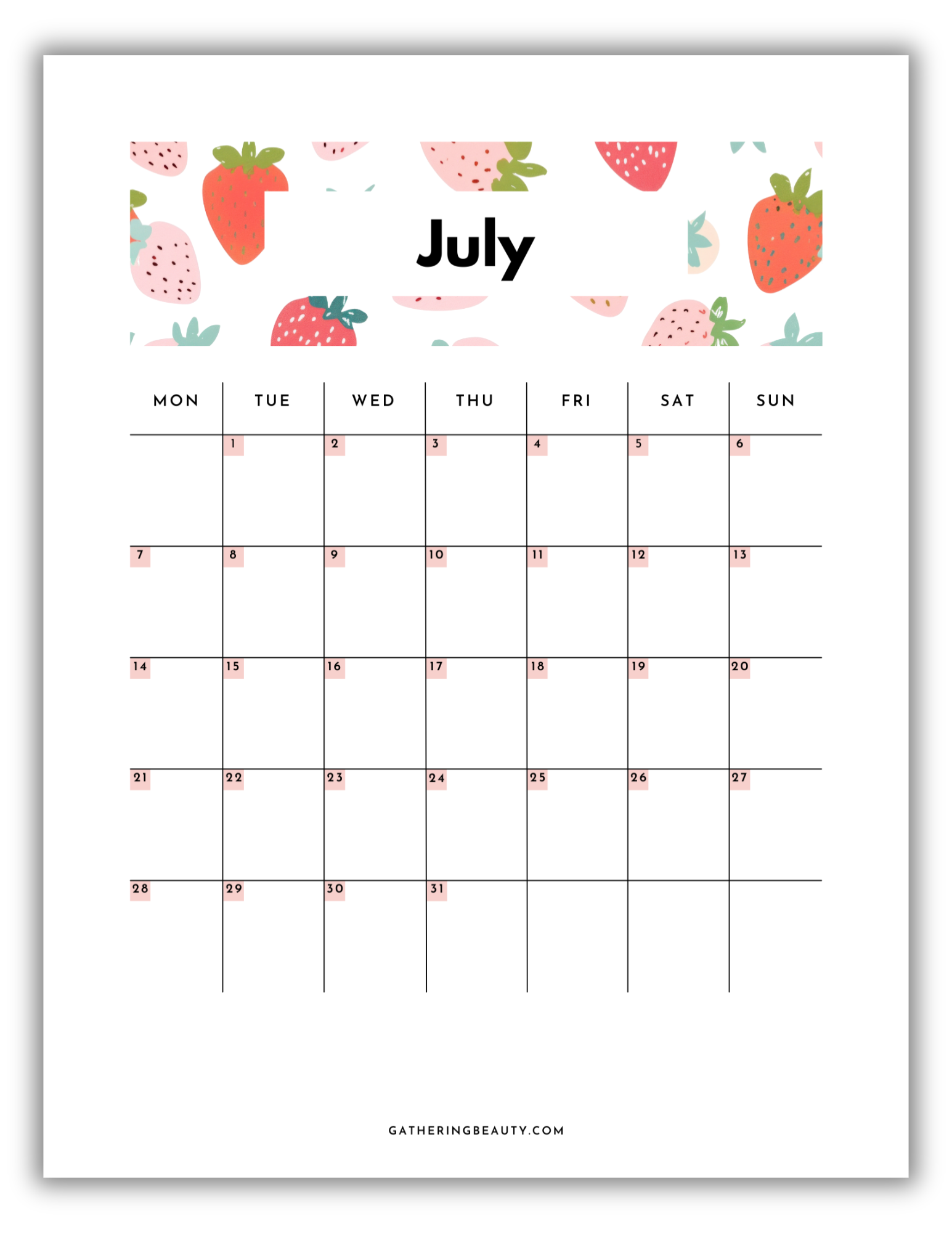 2025 Monthly Calendar Printable Gathering Beauty