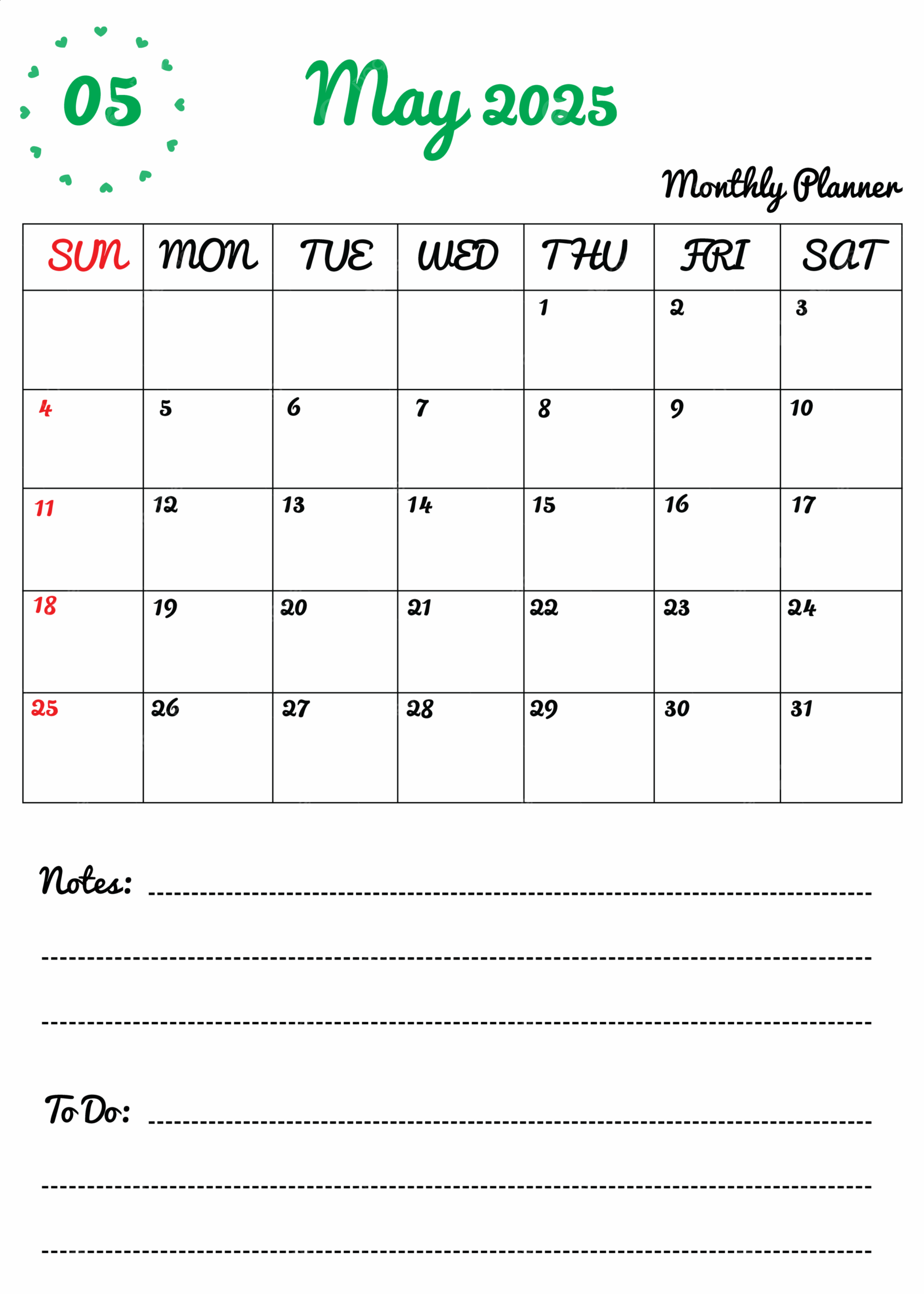 Colorful Monthly Planner Calendar Template May 2025 Cute Design Vector Template Download On Pngtree