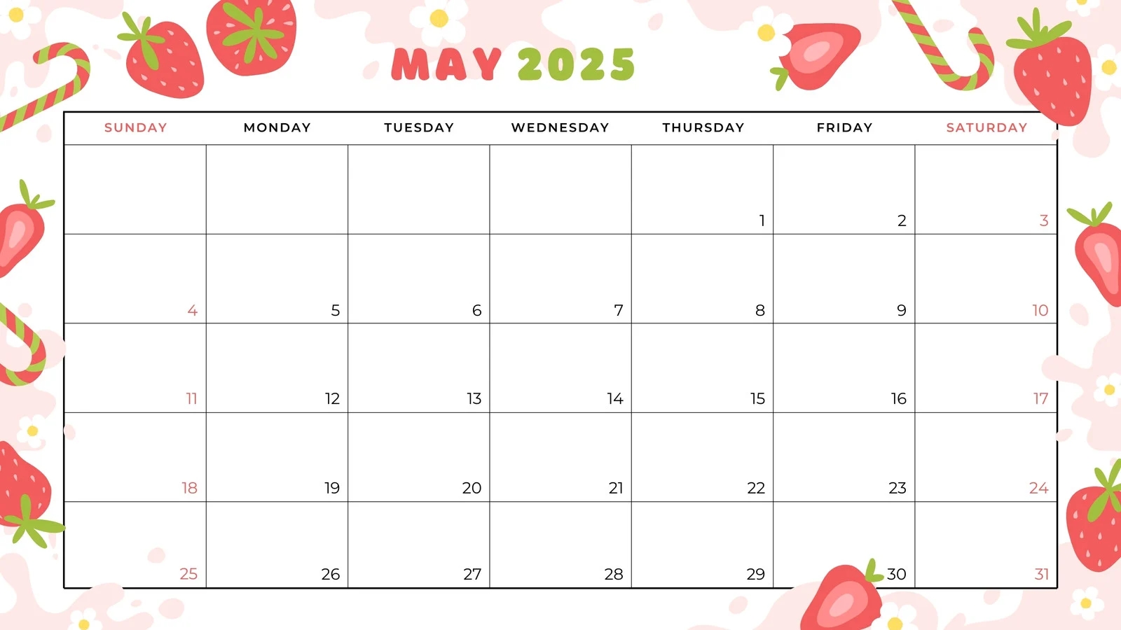 Cute Blank Printable Monthly Calendar 2025