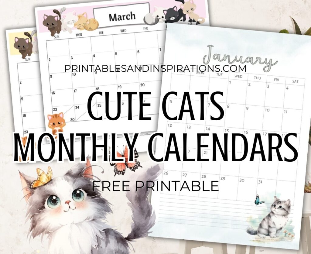 2025 Cute Cats Free Printable Monthly Calendar Printables And Inspirations