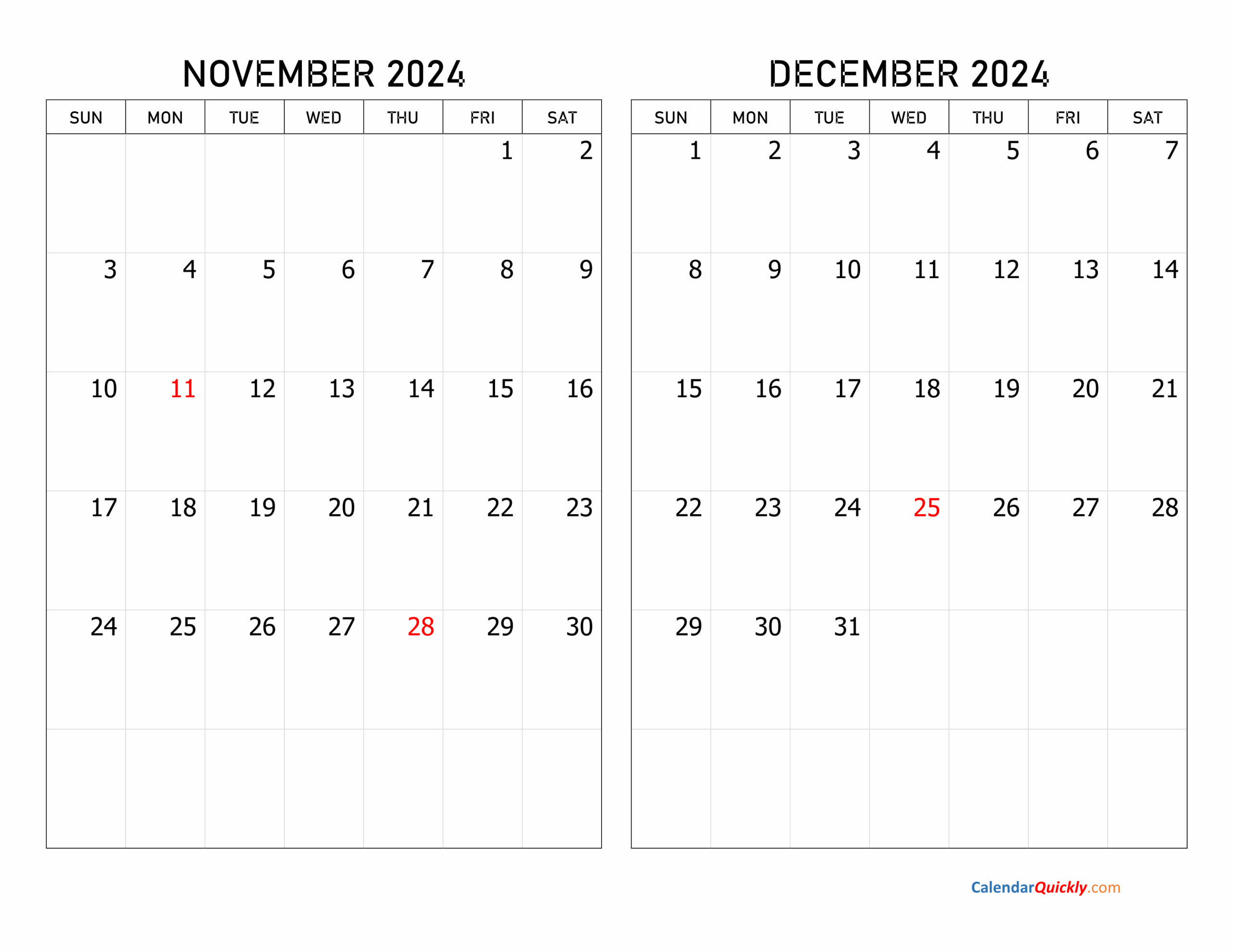 November And December 2024 Calendar Calendar Quickly
