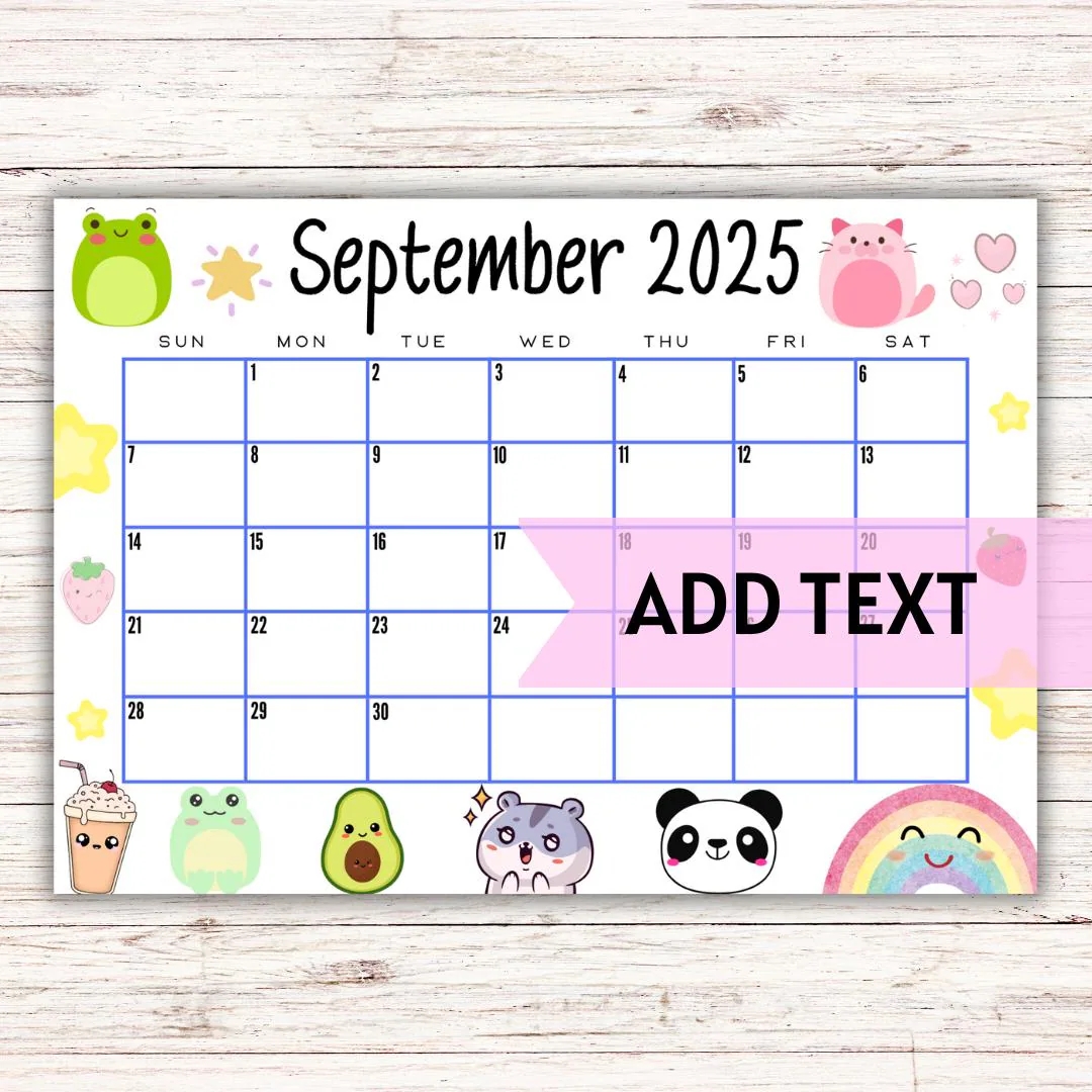 EDITABLE Printable September Calendar 2025 Cute Kid s Kawaii September Calendar W Boba Tea Printable Wall Calendar 2025 Etsy