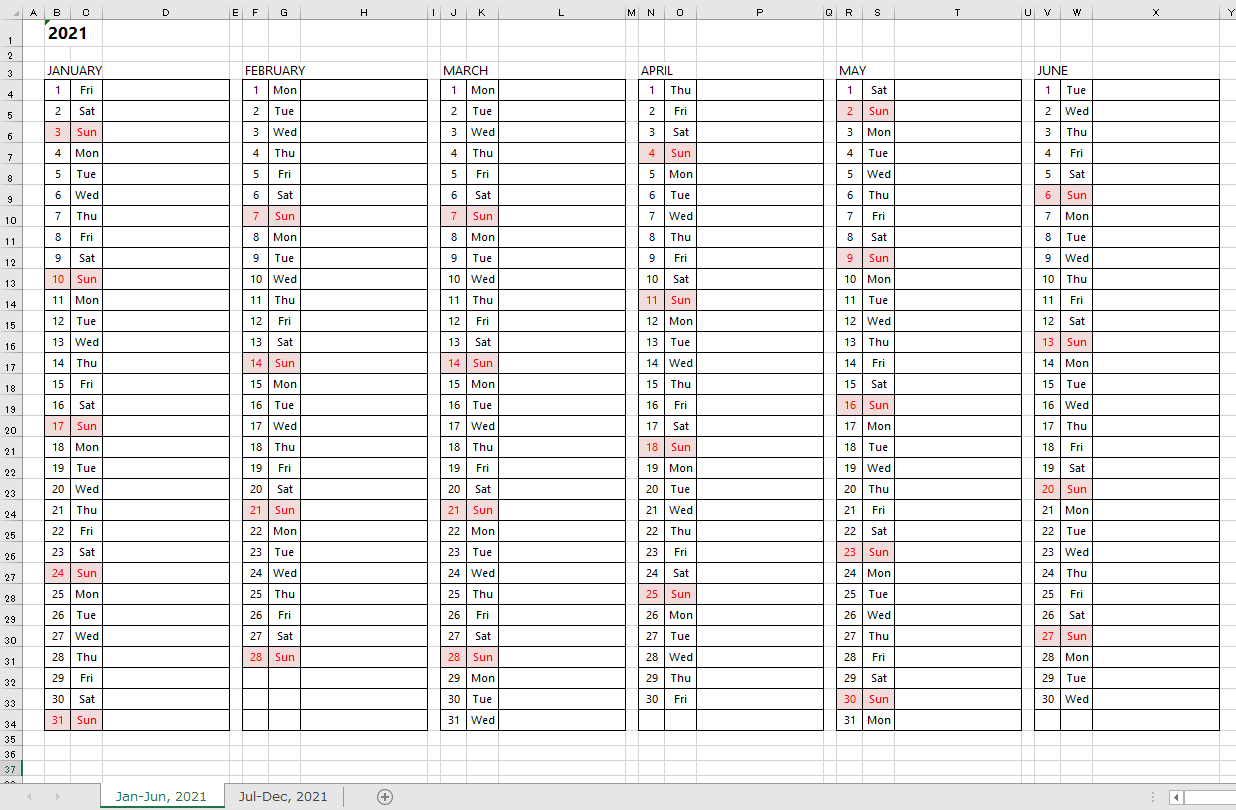 Simply download the Excel 2025 Horizontal Annual Blank Calendar template, customize it to suit your needs, and start filling in important dates and events. You can color-code different activities, add notes, and even set reminders to help you stay organized throughout the year.