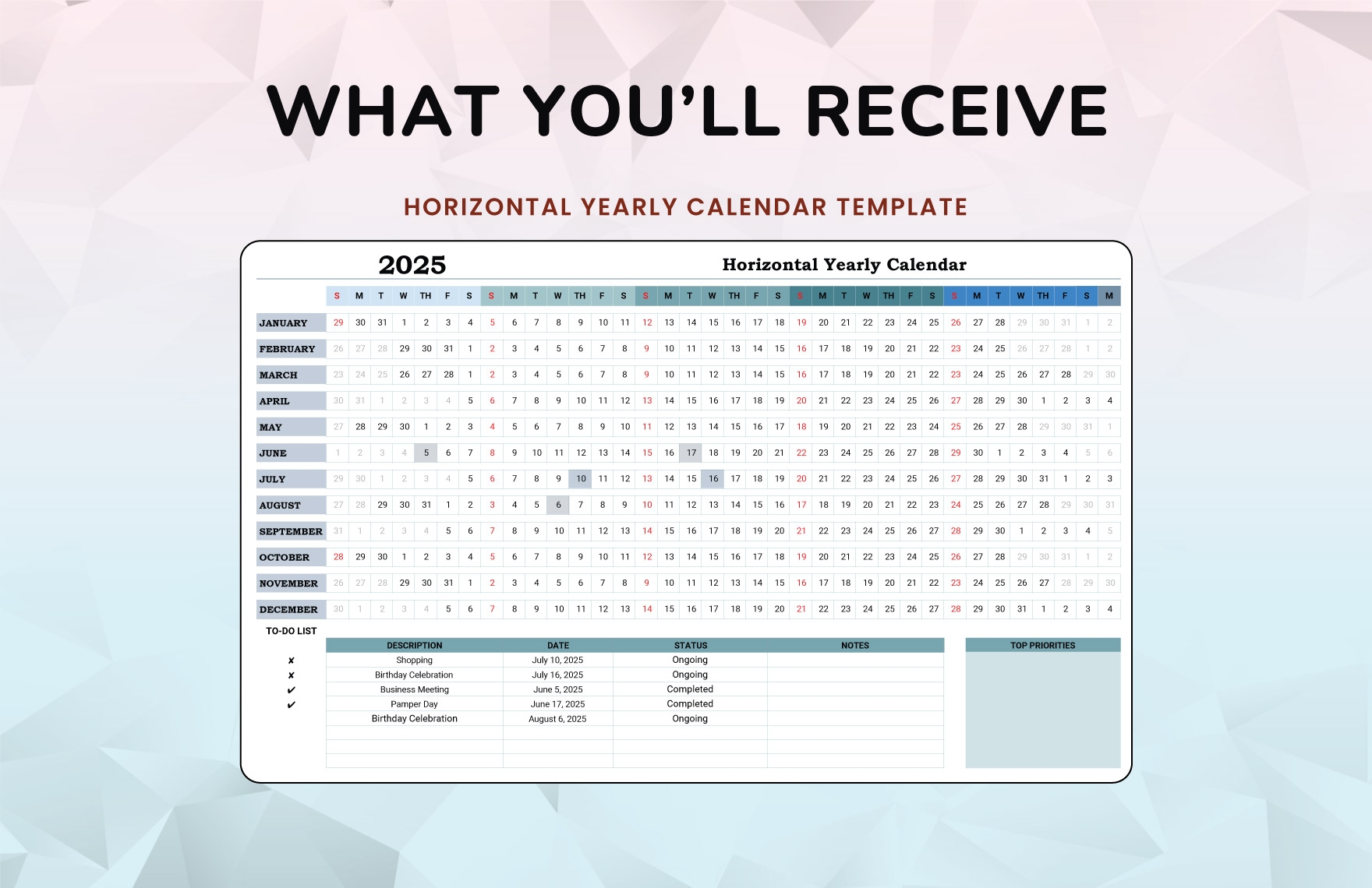 Don’t let another year pass by without a solid plan in place. Download the Excel 2025 Horizontal Annual Blank Calendar today and take control of your schedule like never before!