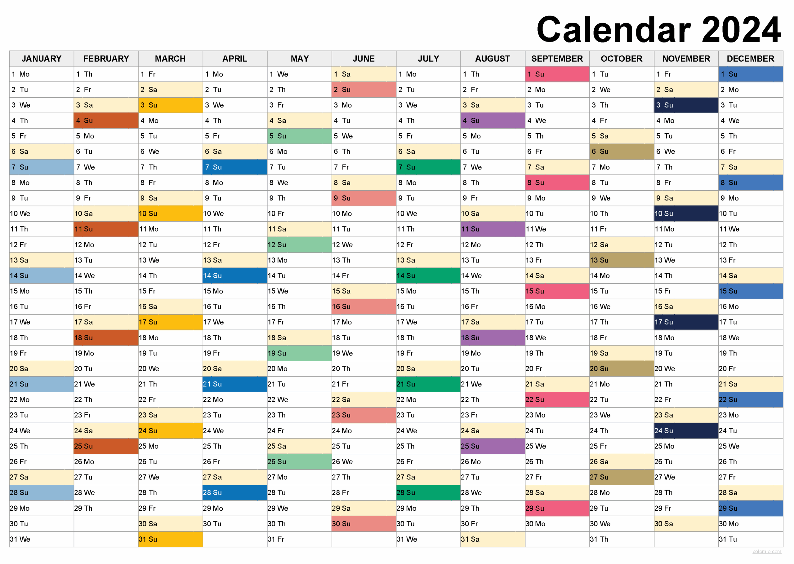 2024 Calendar Printable PDF Excel And Image File Free Download Easy To Print Annual Calendars