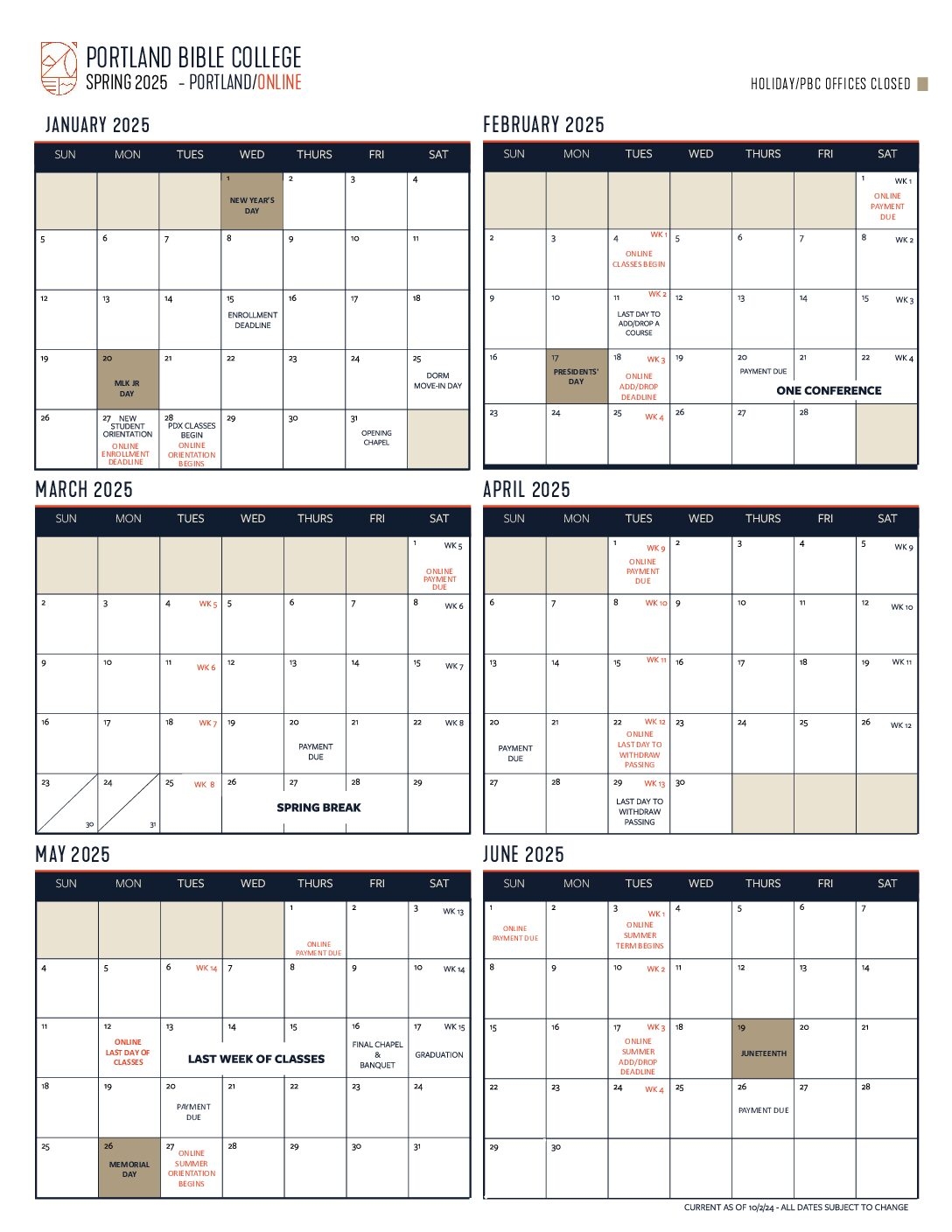 Fall 2025 Academic Calendar Blank