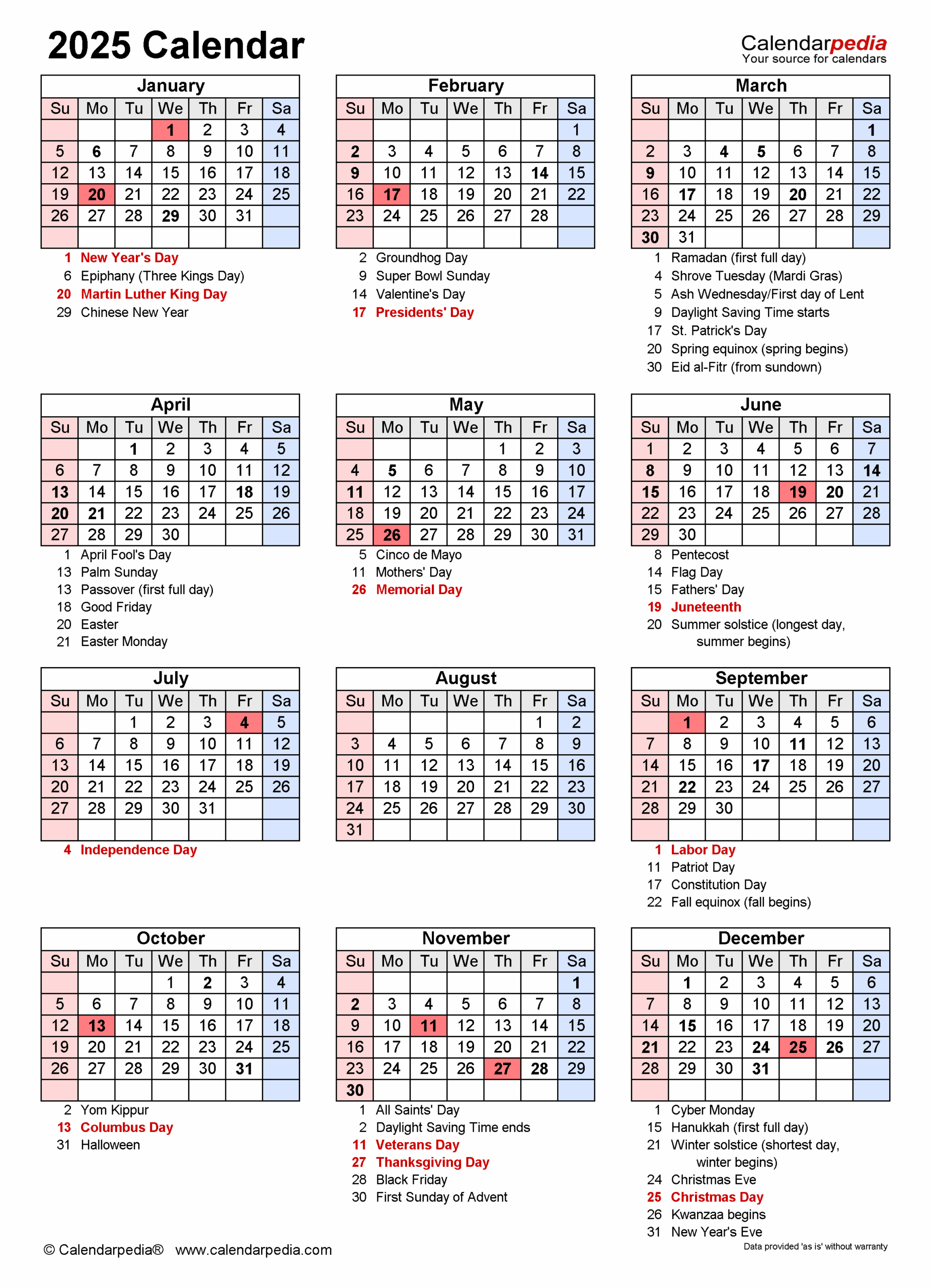 2025 Calendar With Holidays Free Printables In 28 Unique Styles World Of Printables