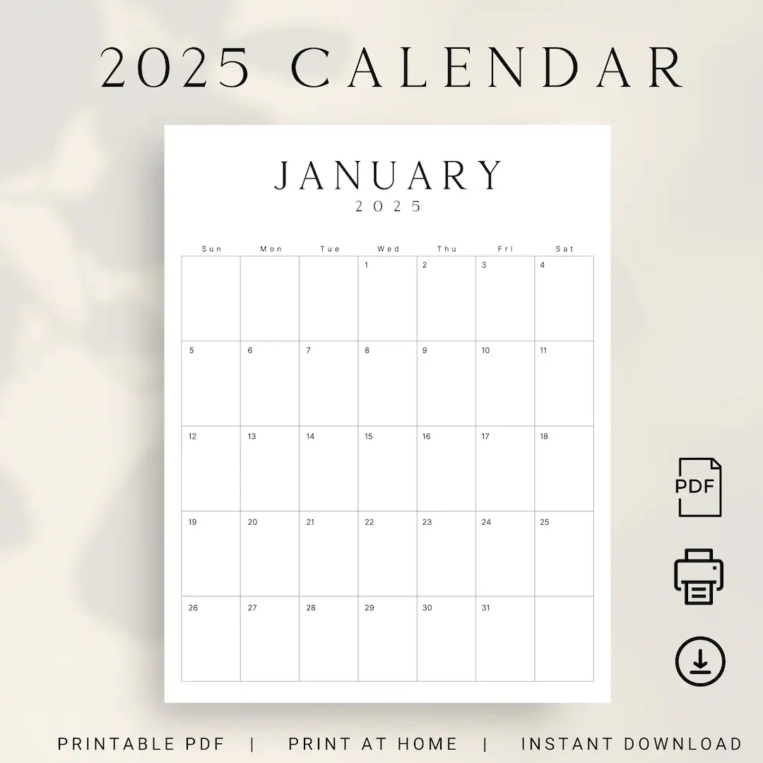 2025 Calendar Printable 2025 Monthly Planner Portrait 2025 LUXE Monthly Calendar Vertical A4 Letter Size Sunday Monday Start Calendar PDF Etsy