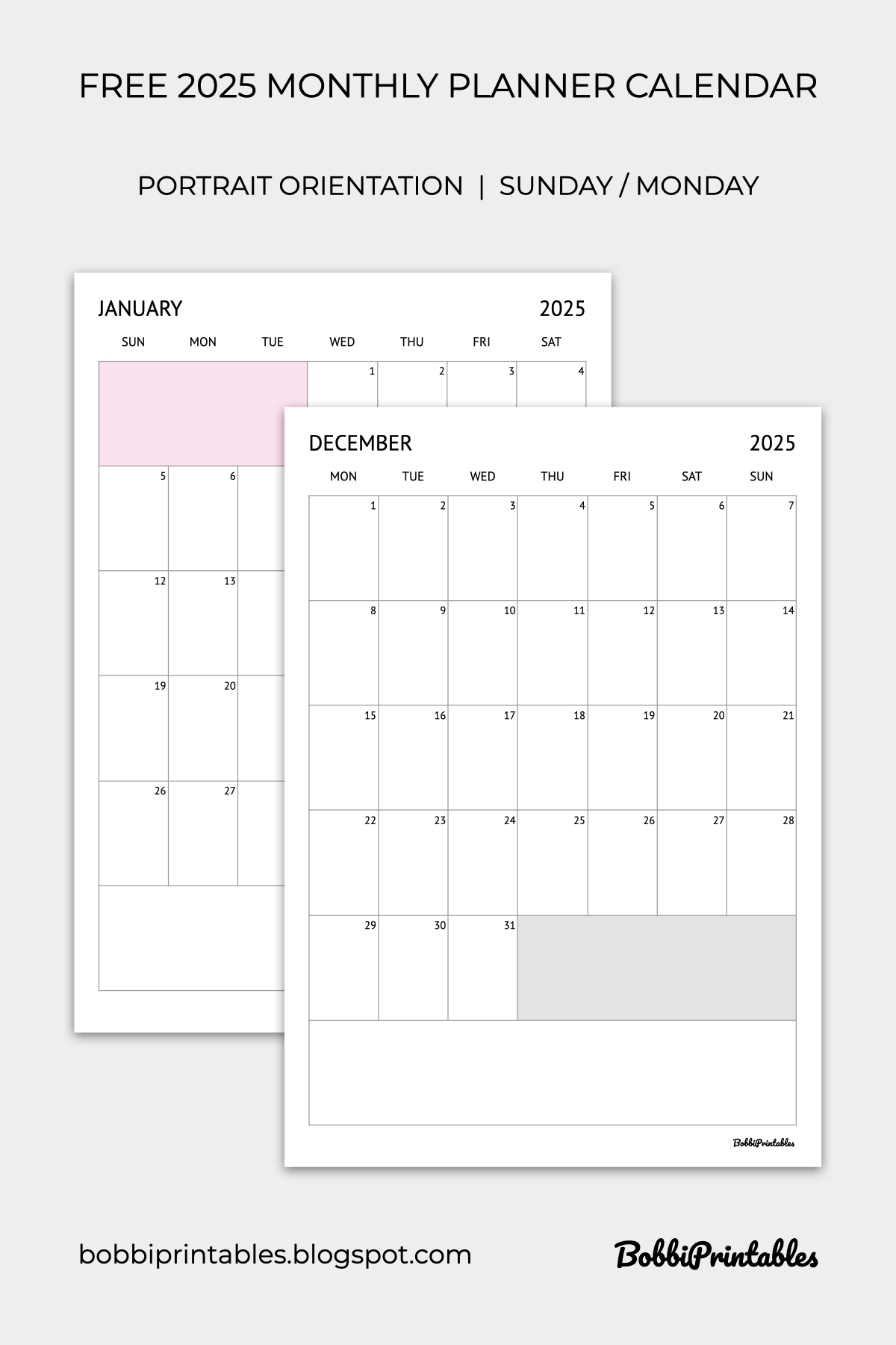 2025 Monthly Planner Calendar Free Printable Portrait Orientation