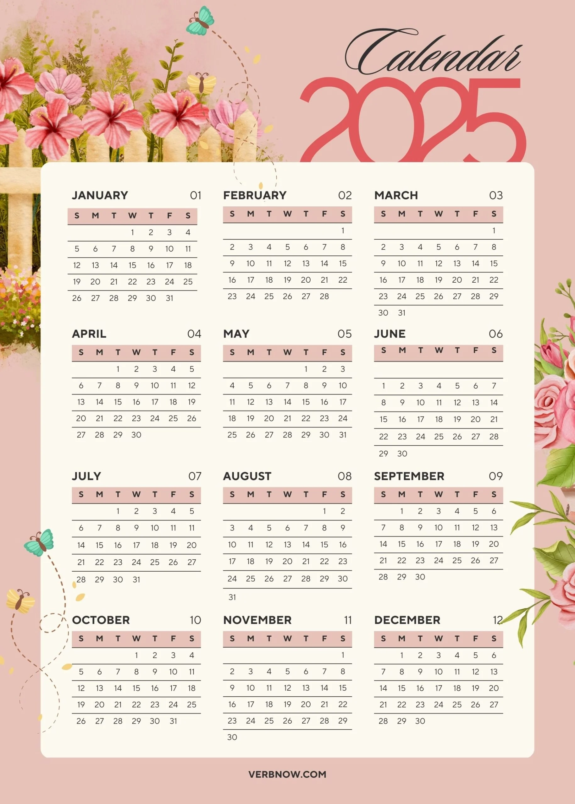 Free 2025 Year Calendar Templates Printable PDF And Customizable